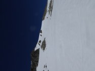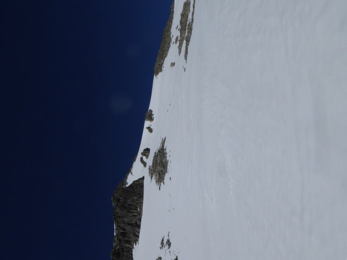 Top Fernsicht, Velours-schnee in der Abfahrt. Immer noch Schnee ab Parkplatz aber je nach Route einzelne Tragstrecken. Morgens -3°, Schnee durchgefroren aber griffig im Aufstieg. Skis dem Gipfelgrat entlang hochgetragen zum Skidepot bis ca. 70Hm unter Gipfel. Im Aufstieg habe ich etwas Zick-Zack Kurs genommen auf Berner Seite, später auf dem Schneegrat in w/sw Richtung zum Gipfel.