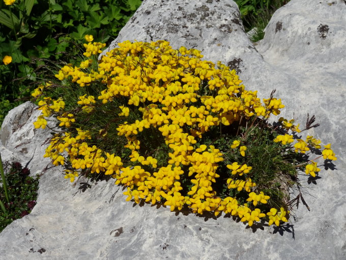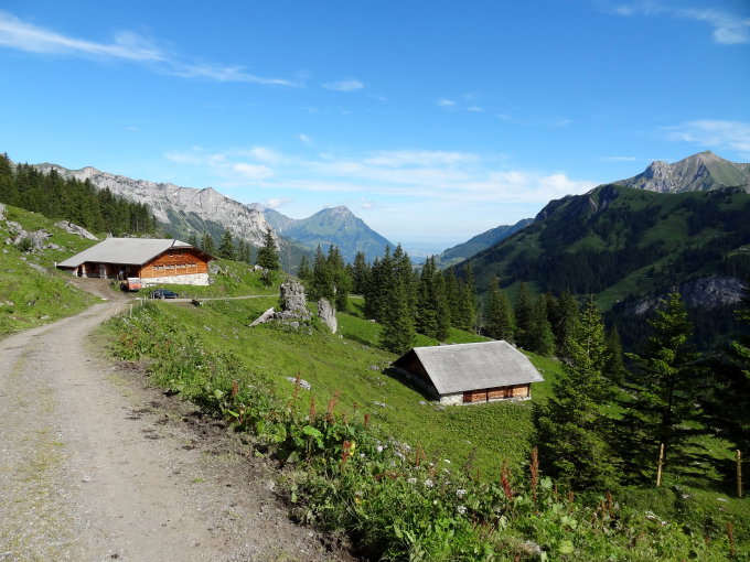 Wir sind auf Blumensuche von der Obere Dünde etwas links der Gipfelfallinie direkt hinaufgestiegen, also rechts des oberen Stalles. Es ist sehr gut gegangen und ist nirgends schwierig. Sobald die Kühe ankommen und grasen, wird es hingegen eher rutschig...