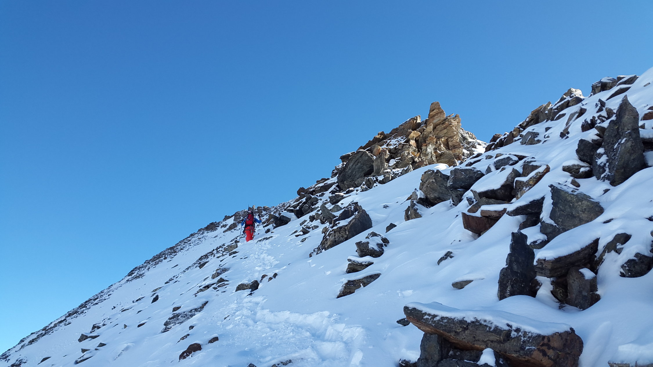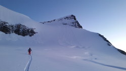 Wir haben dann den Bidergletscher komplett überquert (Achtung Längsspalten!!) und sind die südliche Rinne Richtung Gletscherweng abgefahren. Ab da war Schnee Mangelware und der grösste Teil auf dem Weg zur Hannig Bergstation musste zu Fuss bewältigt werden.