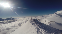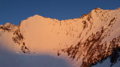 Dank der ersten kalten Nacht seit 4 Tagen verwandelte sich der gefallene Nassschnee in super Pulverschnee. Im Aufstieg bereits ab der Hütte 15cm Pulverschnee (Start um 4.15). Nordabfahrt vom Ulrichshorn mit Powder wie im Januar! Grat zum Balfrin (wir sind immer westlich des Grates hochgestiegen) schneebedeckt, aber gut zu gehen (ohne Steigeisen). Das Gletscherplateau vom Balfrin war ebenfalls noch pulvrig. Das Südostcouloir selbst war dann schon von ganz oben sehr weich (Abfahrt 9.00) und weiter unten mit vielen Schneerutsch Rinnen gespickt. Leider war unser Timing nicht ideal und der untere Drittel des Couloirs hatte dichten Nebel.