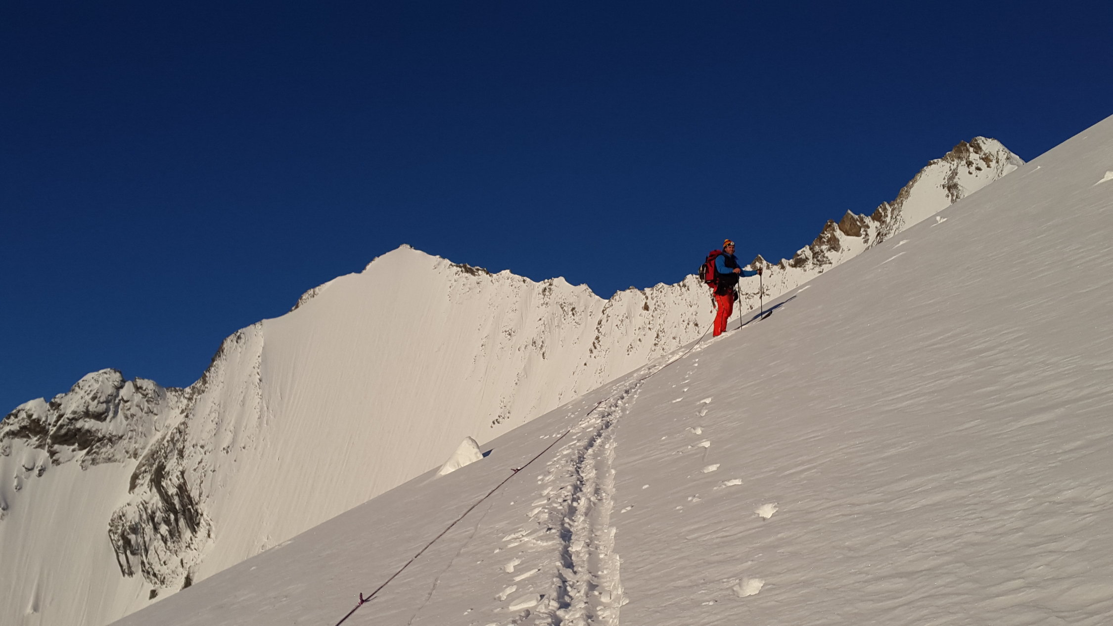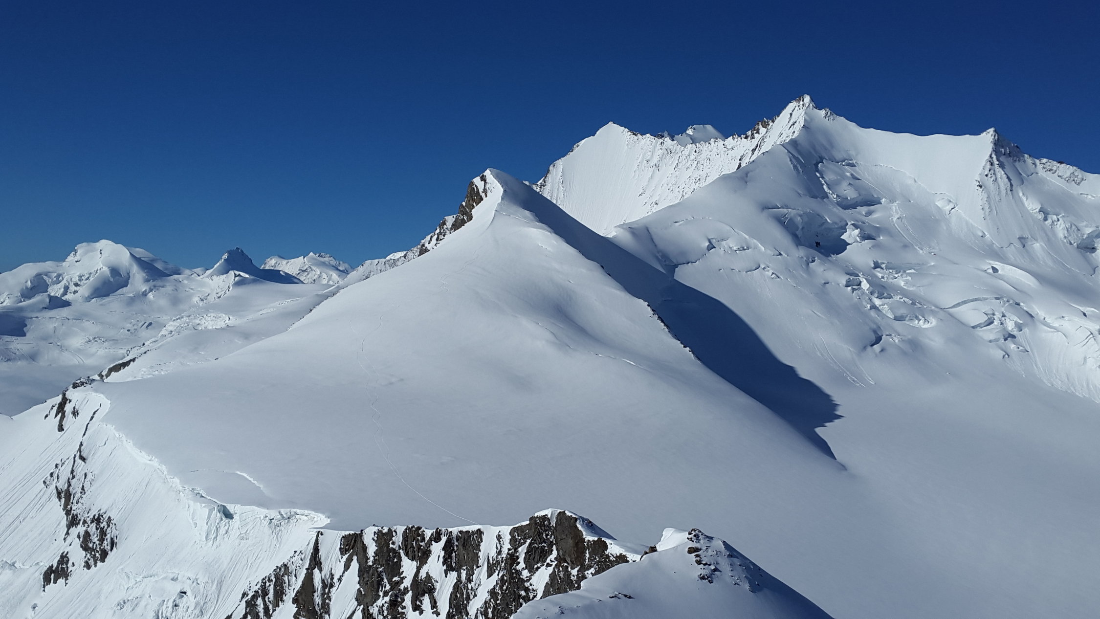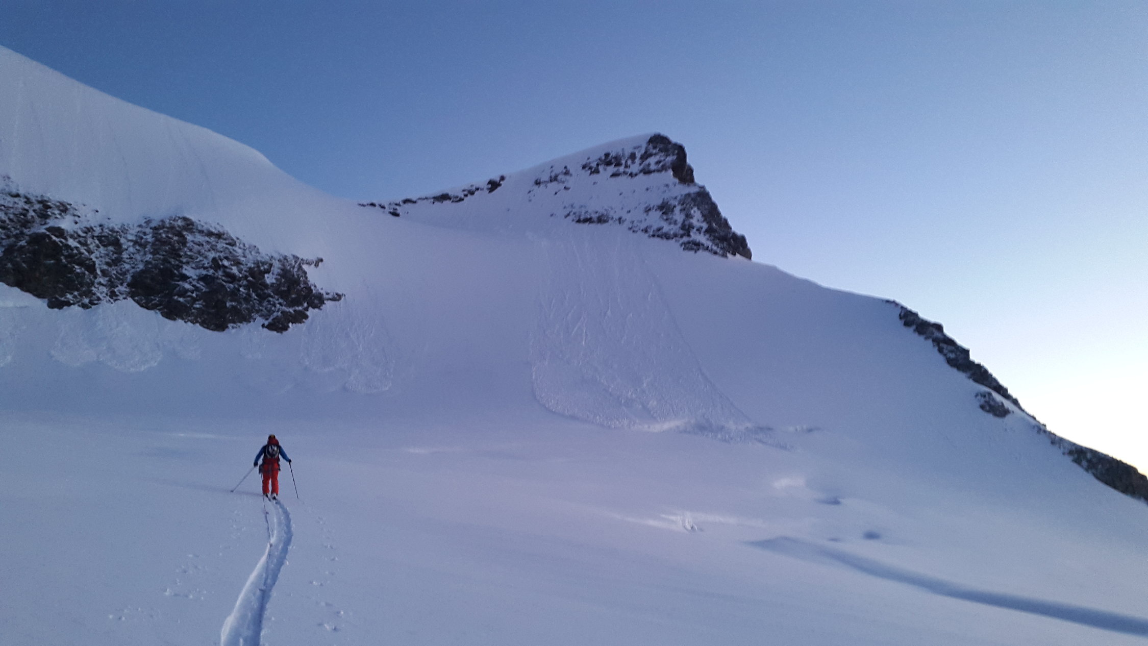 Bleibt zum Skifahren sicher noch eine Weile gut. Die Klassiker wie Lenzspitze Nordwand oder Hohberghorn Nordwand sehen tiptop aus (siehe Bilder). Auch Sam Anthamatten und Jeremy Heitz waren dieser Meinung und fuhren am selben Tag die Lenzspitze Nordwand.