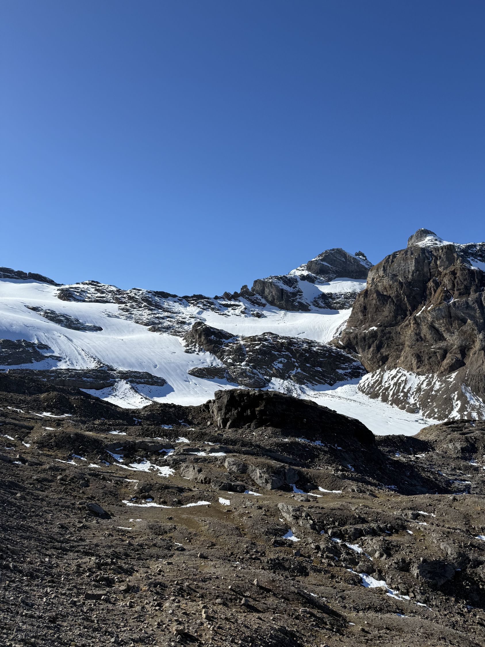 Abstieg zur Musenalp. Oben einiges an Schnee, beim Übergang auf 2287 harter Schnee und vereiste Stellen. Nur für geübte Berggänger empfehlenswert. Heute nur die Hüttenwarte der Gihöhü getroffen, sonst niemand.