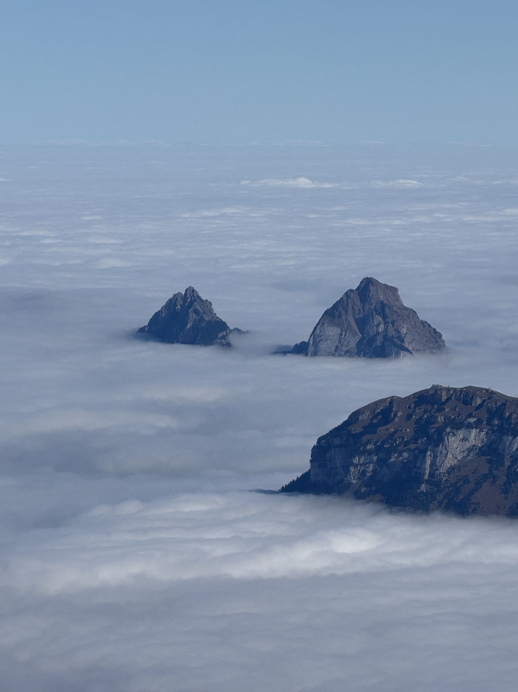 Start in Isenthal, St. Jakob. Über Bywaldalp - Gitschenhörelihütte hinauf zum Gipfel. Ganze Route schneefrei. Heute Nebelmeer auf 1700, darüber schön und schwachwindig