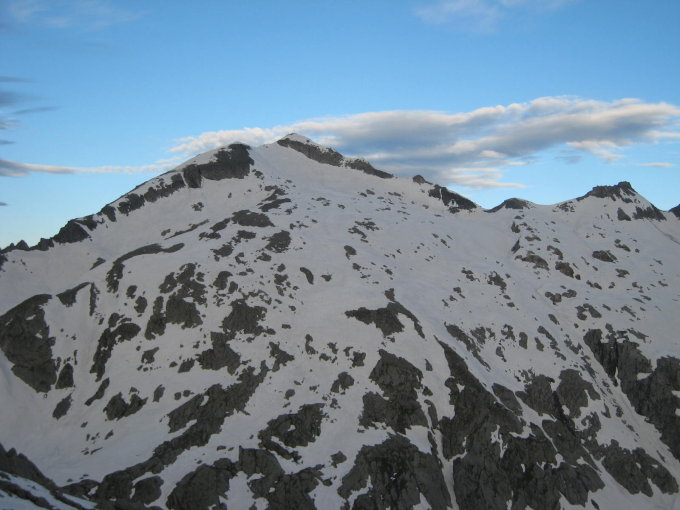 Im unteren Teil kein Schnee mehr, daher 7 Minuten Ski tragen bis zur Einstiegsstelle. Man kann sich gut "durebschiesse", so dass lediglich noch 2 bis 3 Mal kurz Skis abgeschnallt werden müssen, ansonsten für Jahreszeit noch gut machbar. Wegen verbreiteter "Regenlöcher" sollte Schnee aufgesulzt sein, sonst sehr schwierig zu fahren. Start um 05.00 Uhr, Abfahrt vom Lucendro 08.15 Uhr.