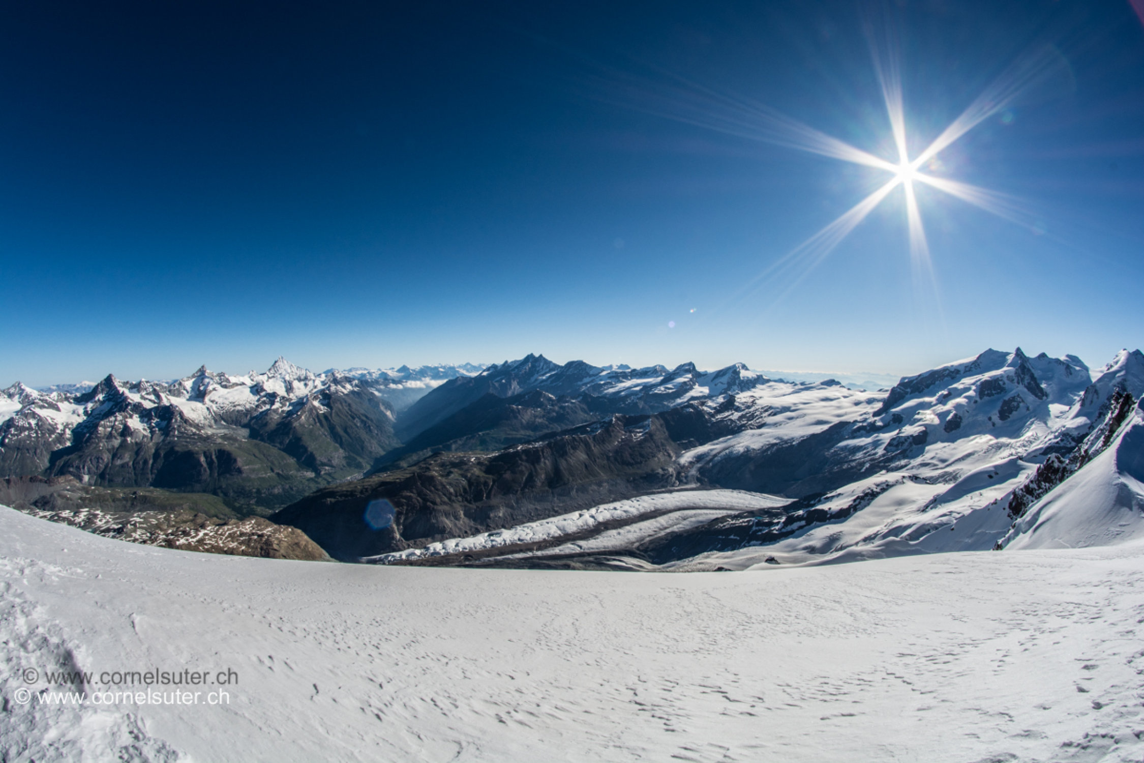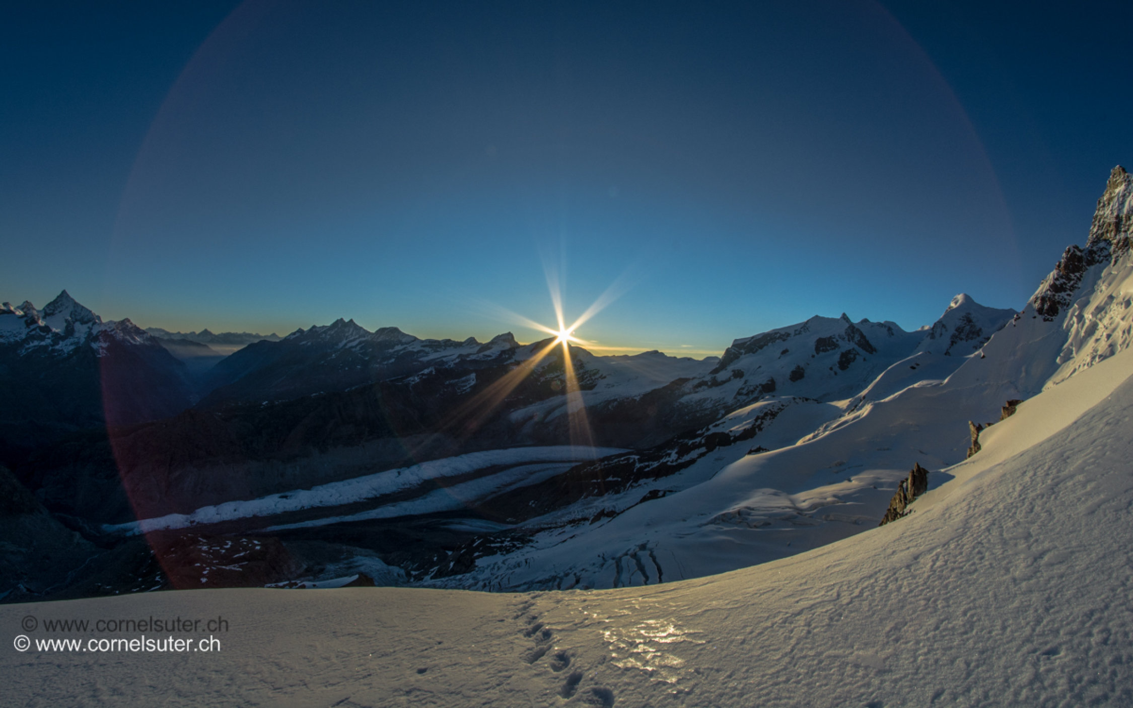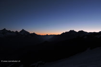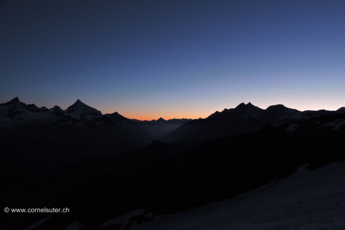 Am morgen früh Sternen klare Nacht, somit war der Schnee auf dem Unterer Theodulgletscher sowie auf dem Triftjigletscher hart und gefroren.
