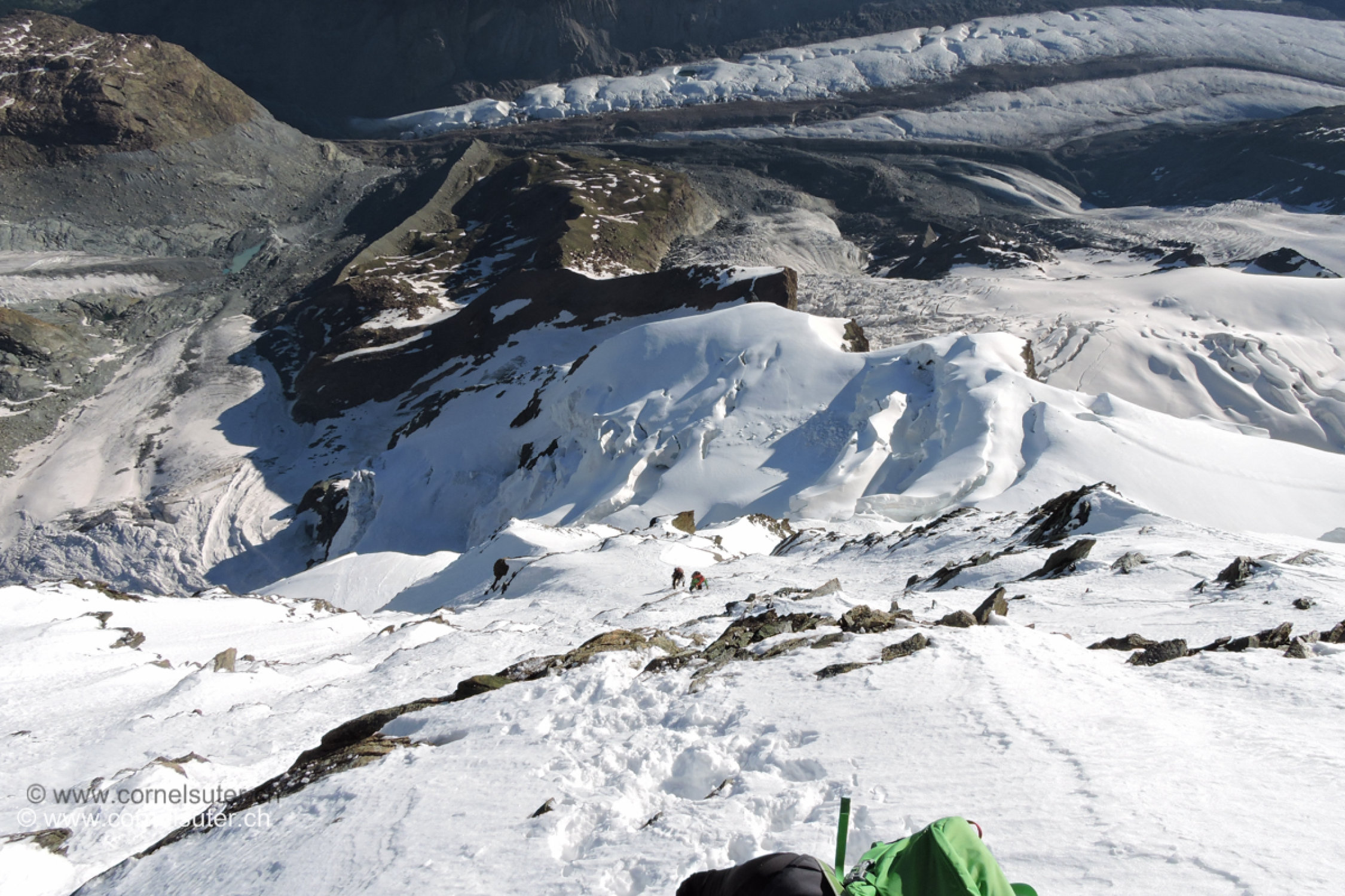 Abstieg auf der Normalroute zur Bergstation Klein Matterhorn.