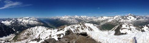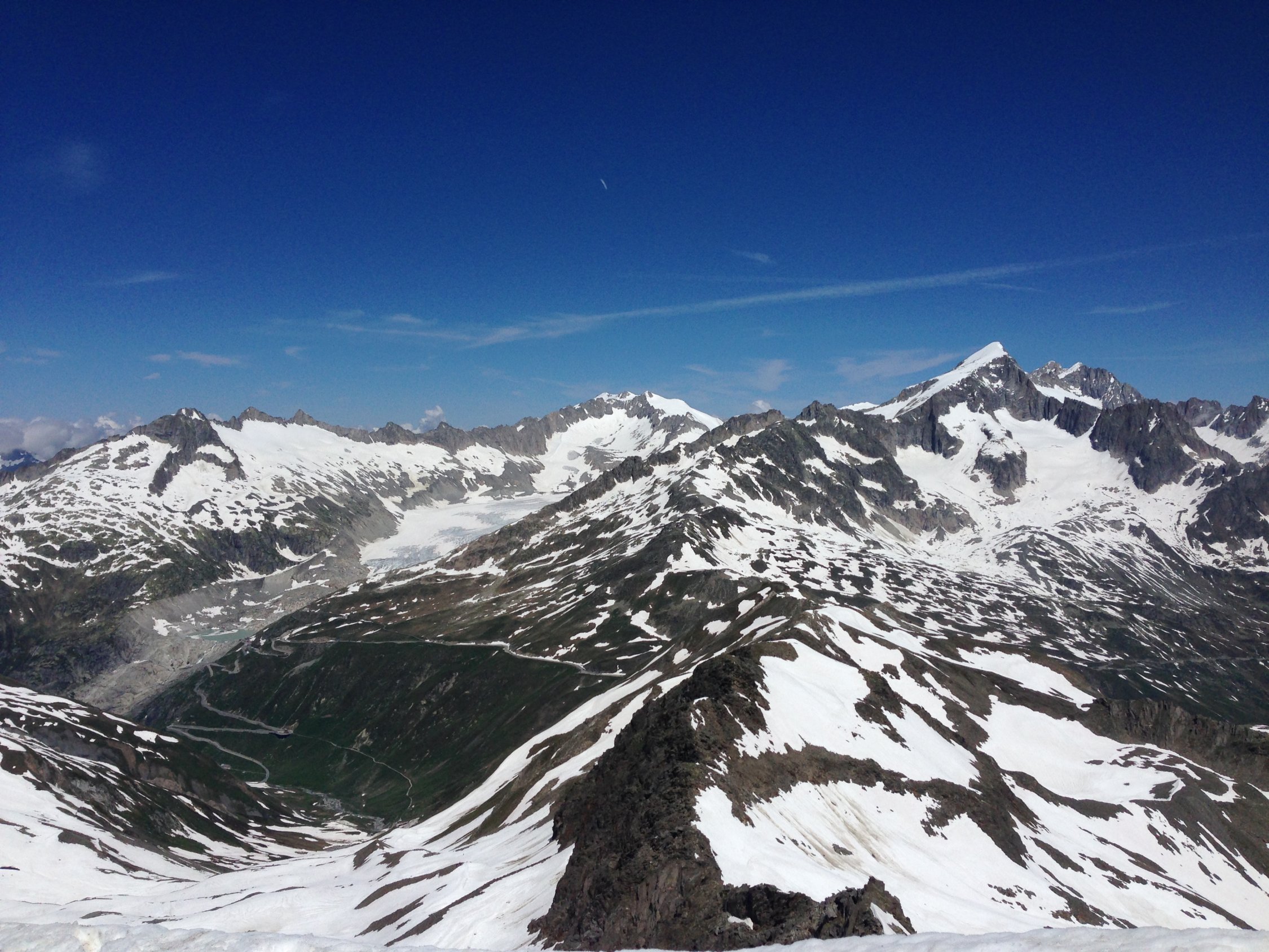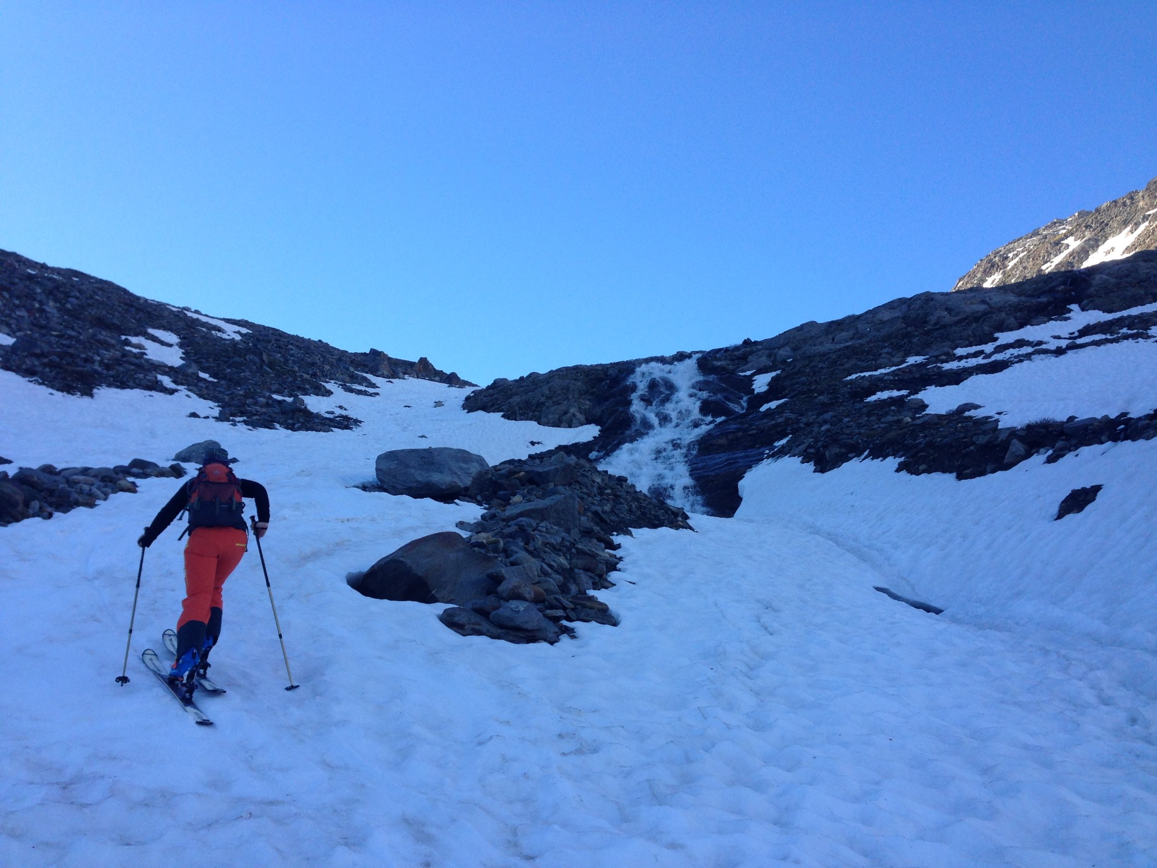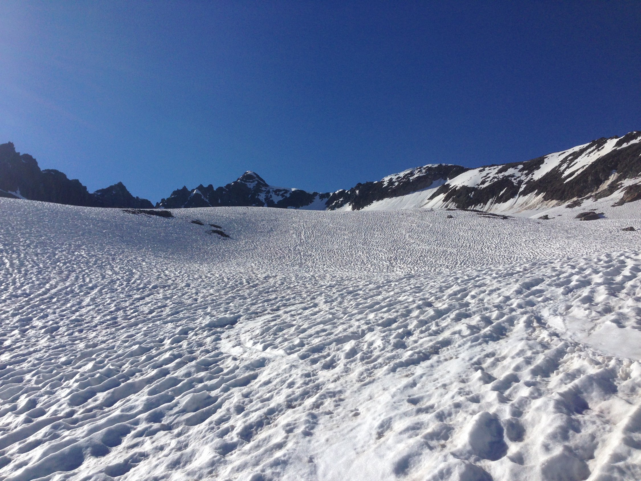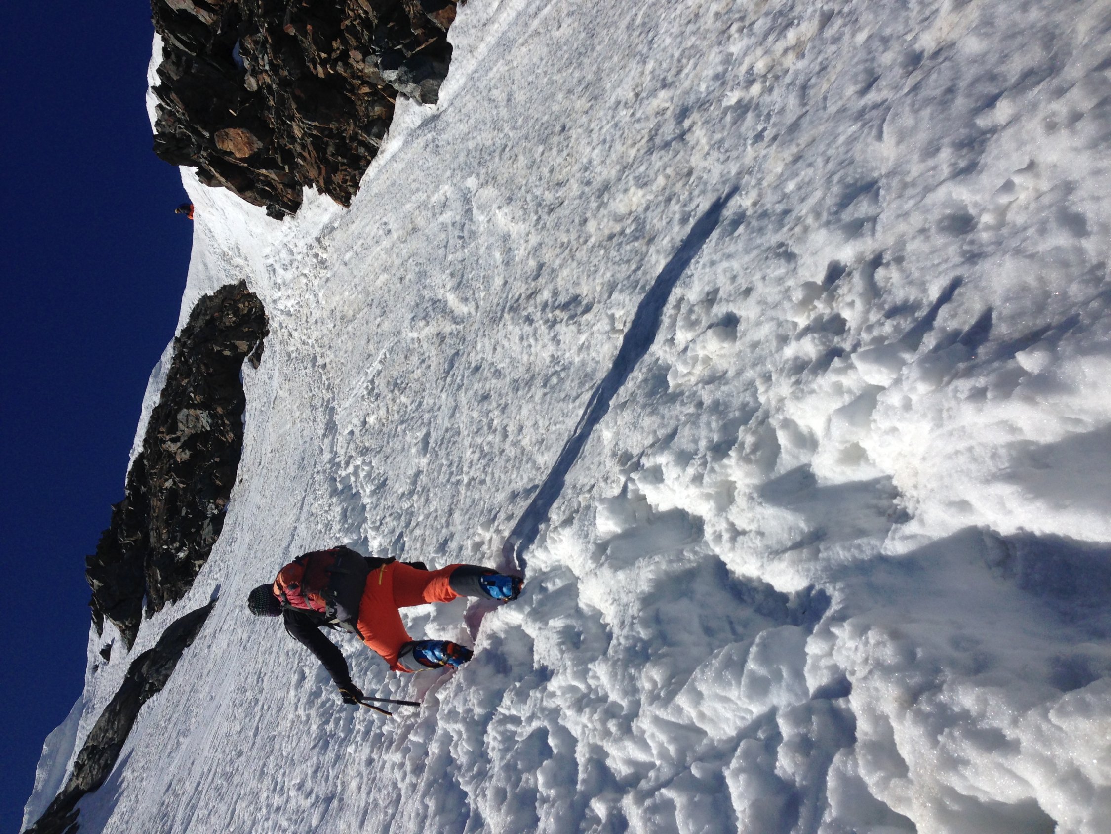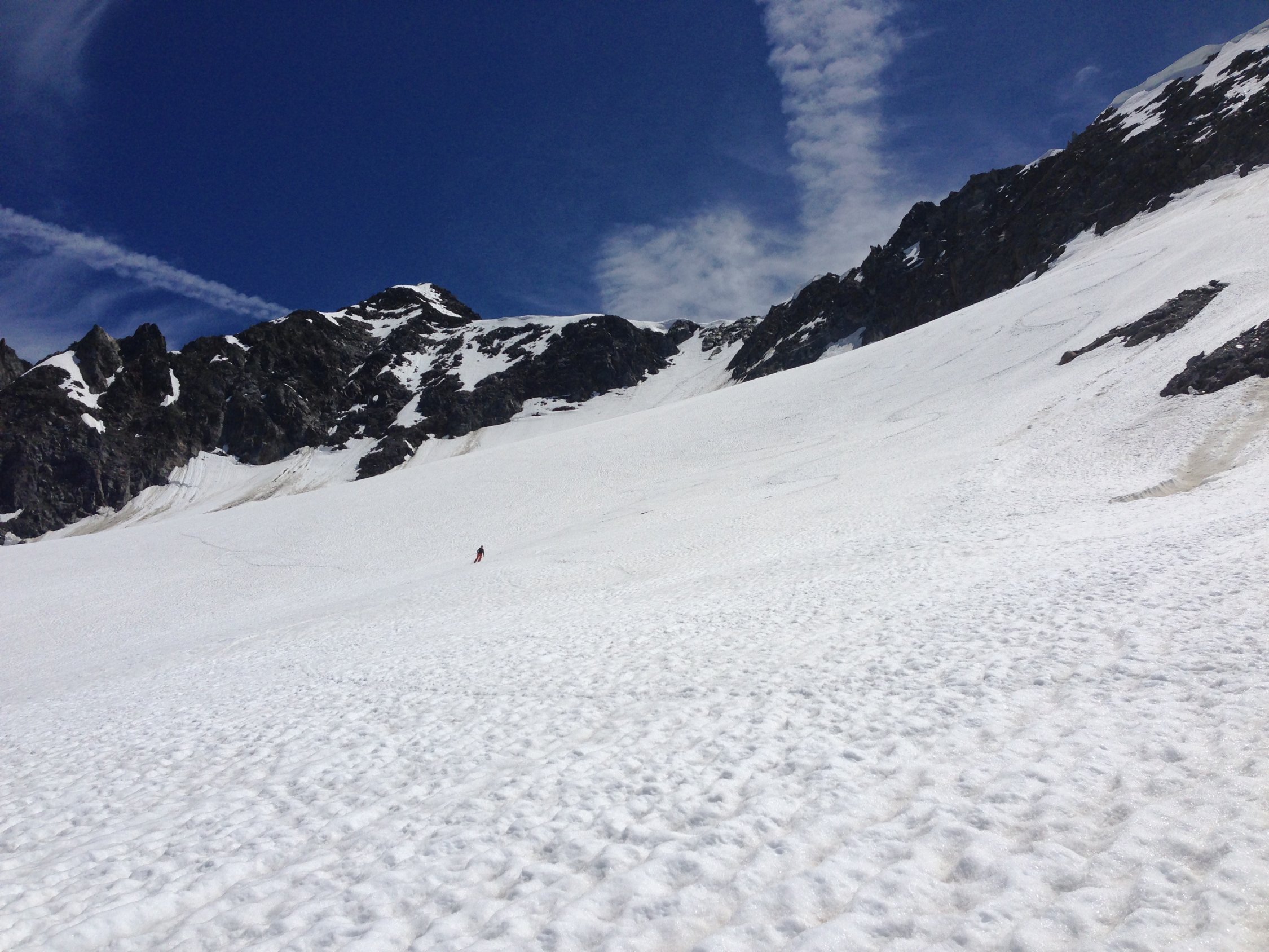 Wir können die Einträge der letzten Tage nur noch einmal bestätigen - es herrschen traumhafte Verhältnisse für Ende Juni. Immer noch ist der Start ab Station Muttbach-Belvedere an den Bahngleisen möglich. Derzeit noch durchgehende Schneedecke. Sommerharter Schnee, der jedoch im unteren Teil in Form extremen Büserschnees aufwartet. Am Morgen war dieser knochenhart. Im oberen Teil gibt es noch viel Schnee und der Gletscher ist gut eingedeckt. Die Steilflanke zum Grat rauf besitzt gute Trittspuren. Der Grat selbst hat eine größere Unterbrechung. Generell ist im oberen Bereich ein Pickel und Steigeisen empfehlenswert. Die Steilflanke kann mit entsprechendem Auffirnen noch gut befahren werden. Am Gipfel hatten wir dann heute eine geniale Sicht und ein wunderbares Panorama bis zum Mont Blanc. Diese Tour haben heute einige genossen, Hochtourer wie Skitürler. Die meisten sind jedoch wohl etwas früh abgefahren und wurden unten in den Schüttelbechern ordentlich durchgeschüttelt. Derzeit heißt es nicht zu früh zu starten und lieber etwas länger das Panorama genießen, was einem bei diesem Berg nicht schwer fallen sollte - je später, desto besser. Wir sind um 13:00Uhr abgefahren und hatten fantastischen Firn im oberen Teil. Selbst der untere Teil hat sich dann gut fahren lassen. Der Büßerschnee war dann soweit aufgefirnt, dass man gut durchpflügen kann. Abfahrt dann direkt bis zur Bahntrasse - was will man mehr im Sommer ;-)) Eine wunderschöne Abschlusstour, wie man sie sich nur wünscht.
