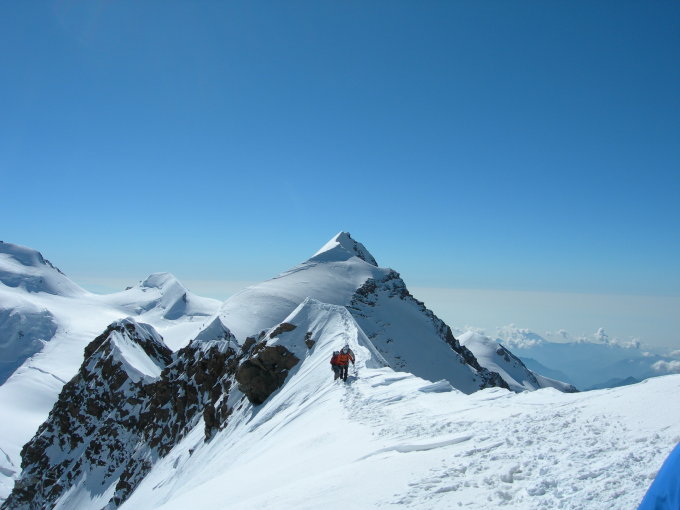Wir haben die Überschreitung von Cap Gnifetti nach Cap. Quintino Sella gemacht. Perfekte Verhältnisse, guter Trittschnee, gutes Spur. Es gab ein mäßiger Wind aber dass hinderte nicht zu viel.