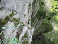 sehr gute Verhältnisse, Schneefelder nordseitig fast restlos weggeschmolzen, Fels trocken; super abgesicherte Route, nur einmal einen kleinen Friend 0,5 gebraucht;