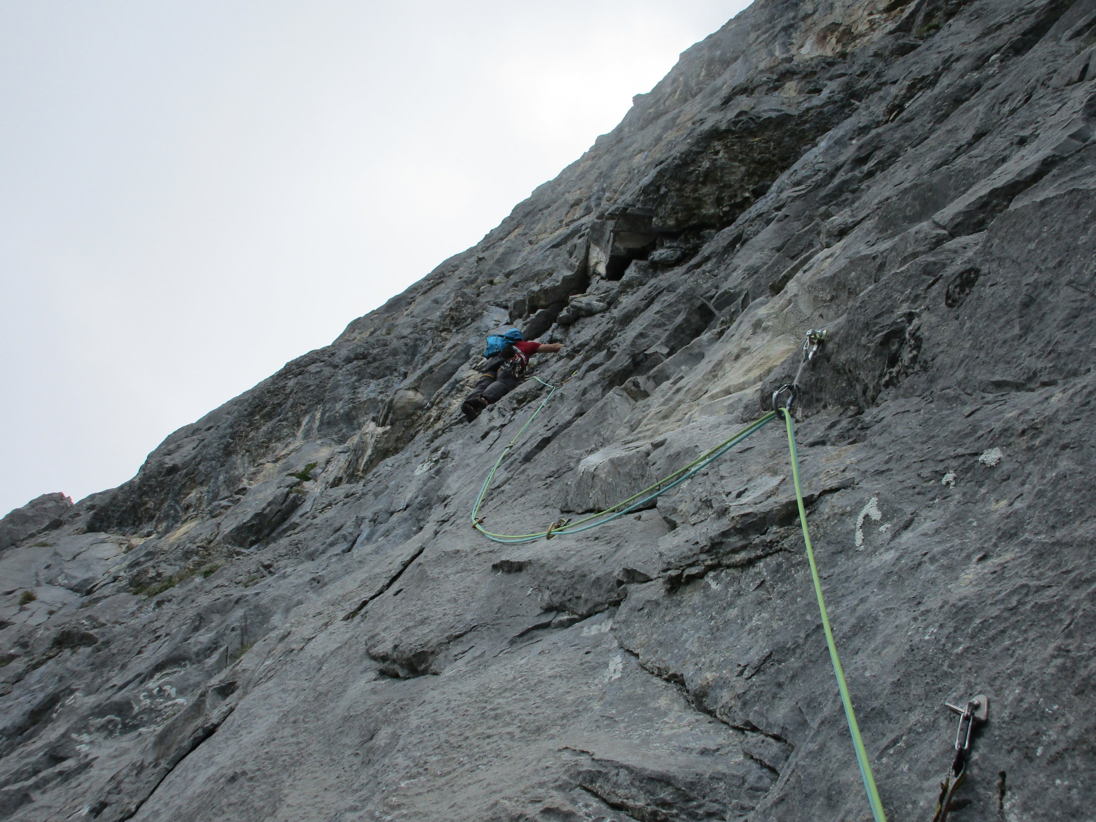 heute bei leicht wolkenverhangenem Himmel ideale Verhältnisse; nur wir am Klettern und später noch eine Seilschaft in der schwierigeren Chico Mendez; zu Viert brauchten wir knapp 2 Stunden für den Zustieg, 41/2 fürs Klettern und 11/2 Stunden für den Abstieg; Mit Gipfelaussichtgeniessen also rund 9-10 Stunden.