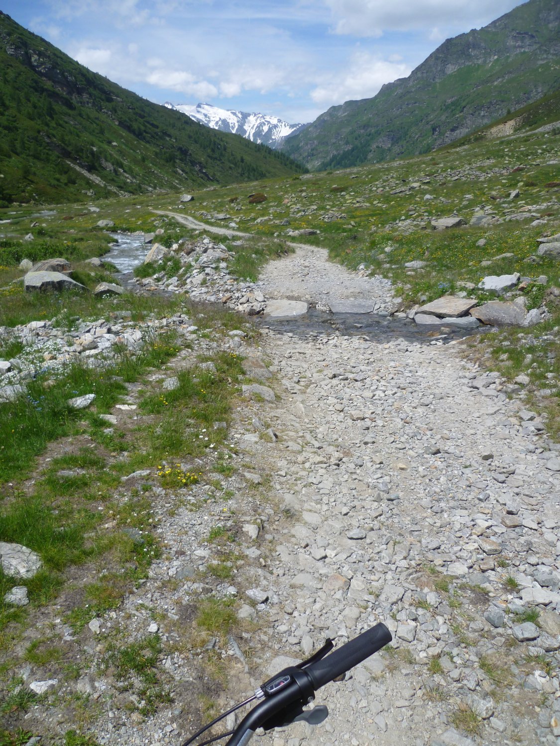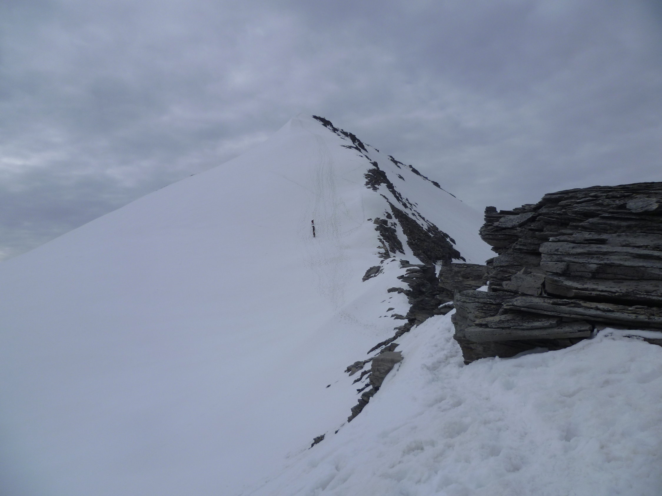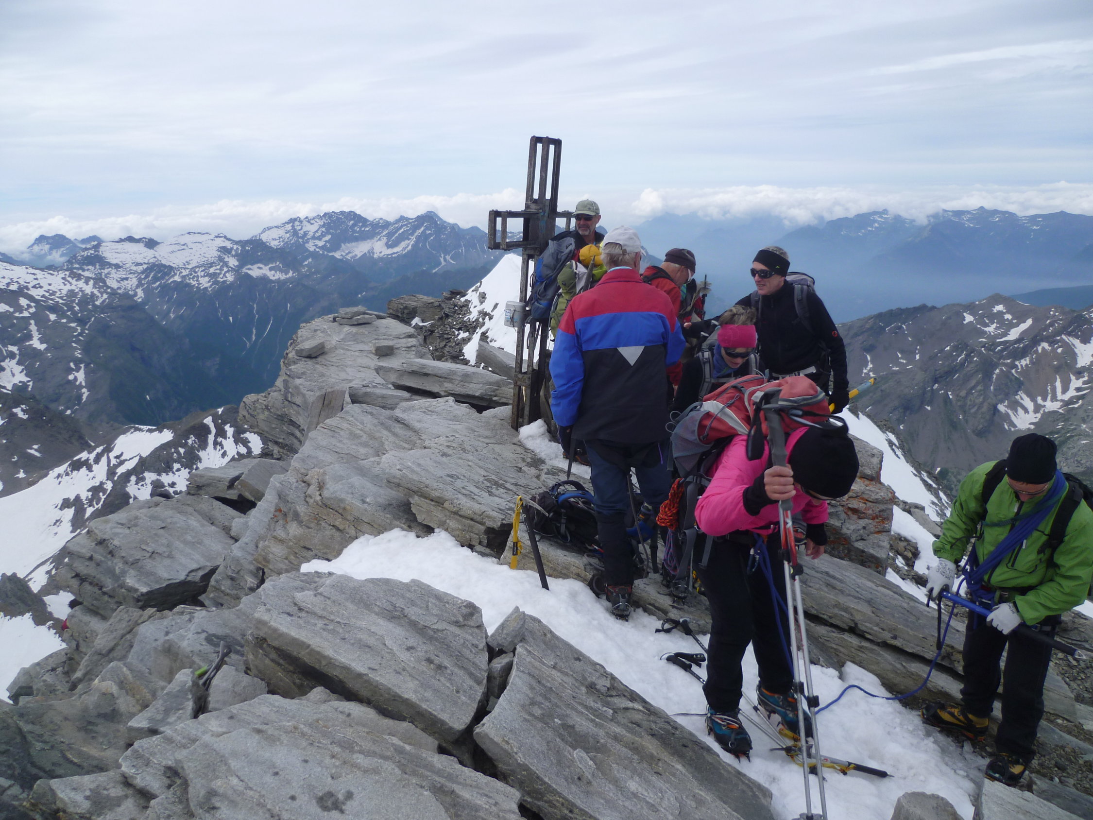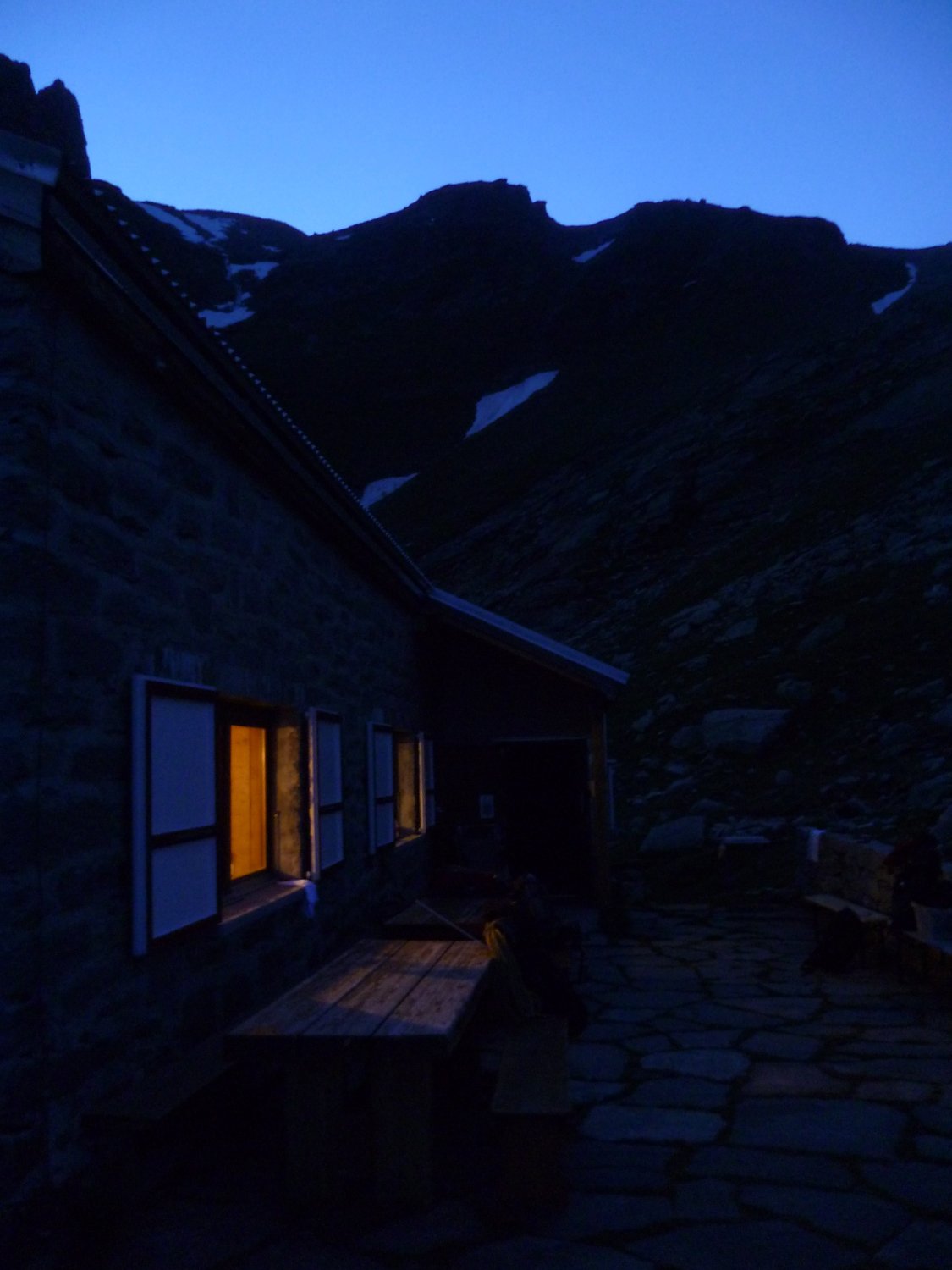 Übernachtung in der Adula UTOE -Hütte (2393 m), sehr nettes Personal! Start zum Rheinwaldhorn/Cima dell´Adula (ital.) nach Frühstück um 05:30 Uhr. Am Gipfel um 9 Uhr. Abfahrt durch das Valle Carassina mit Mountainbike, steinig aber zügig :)