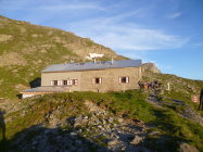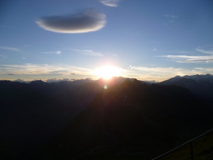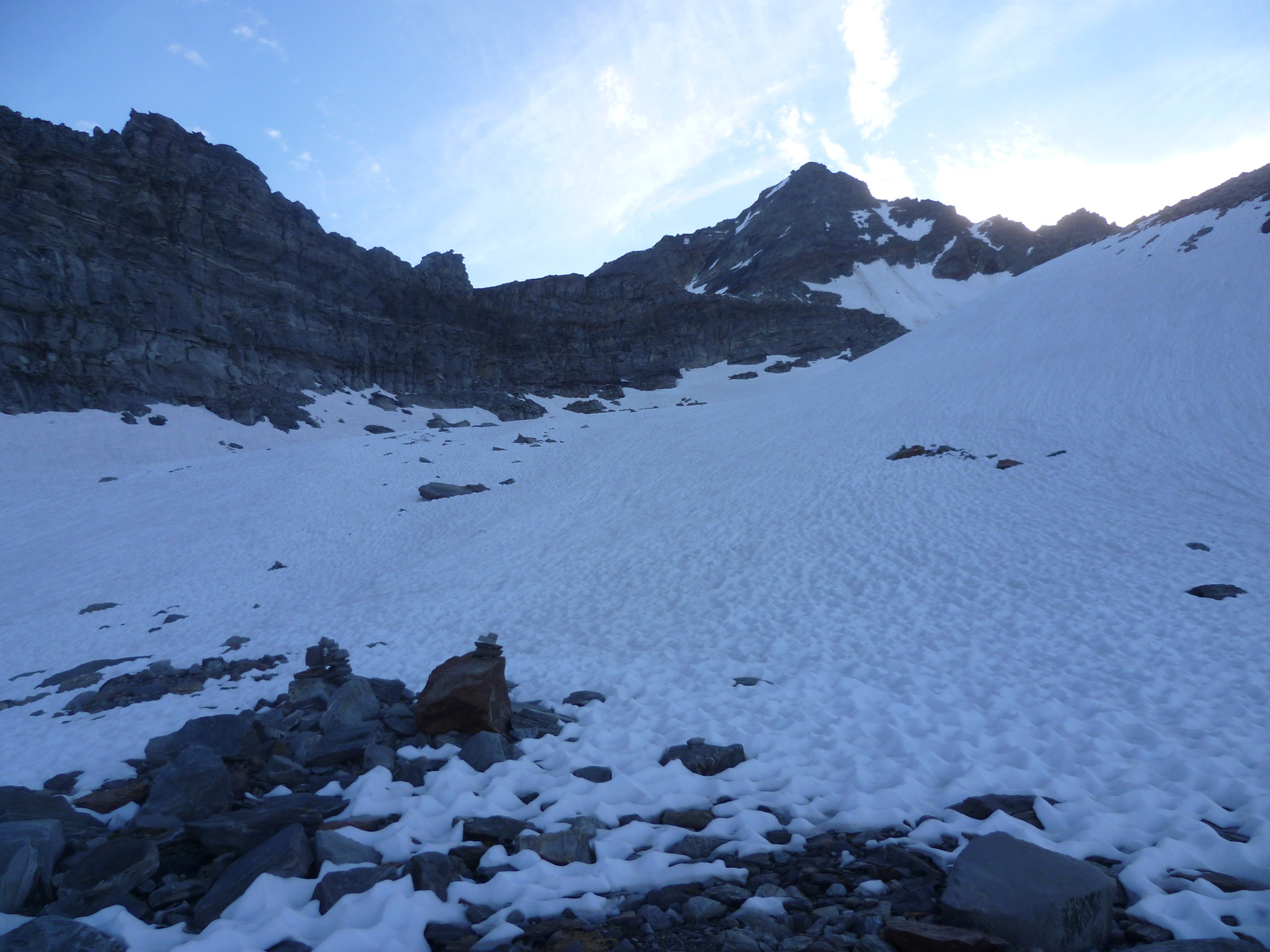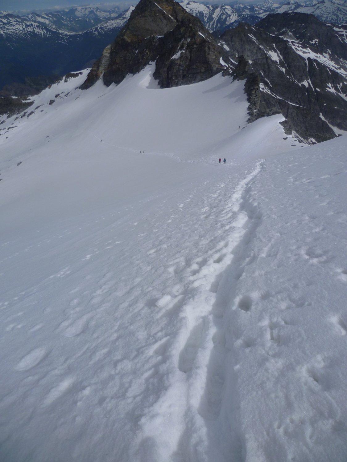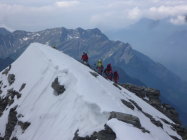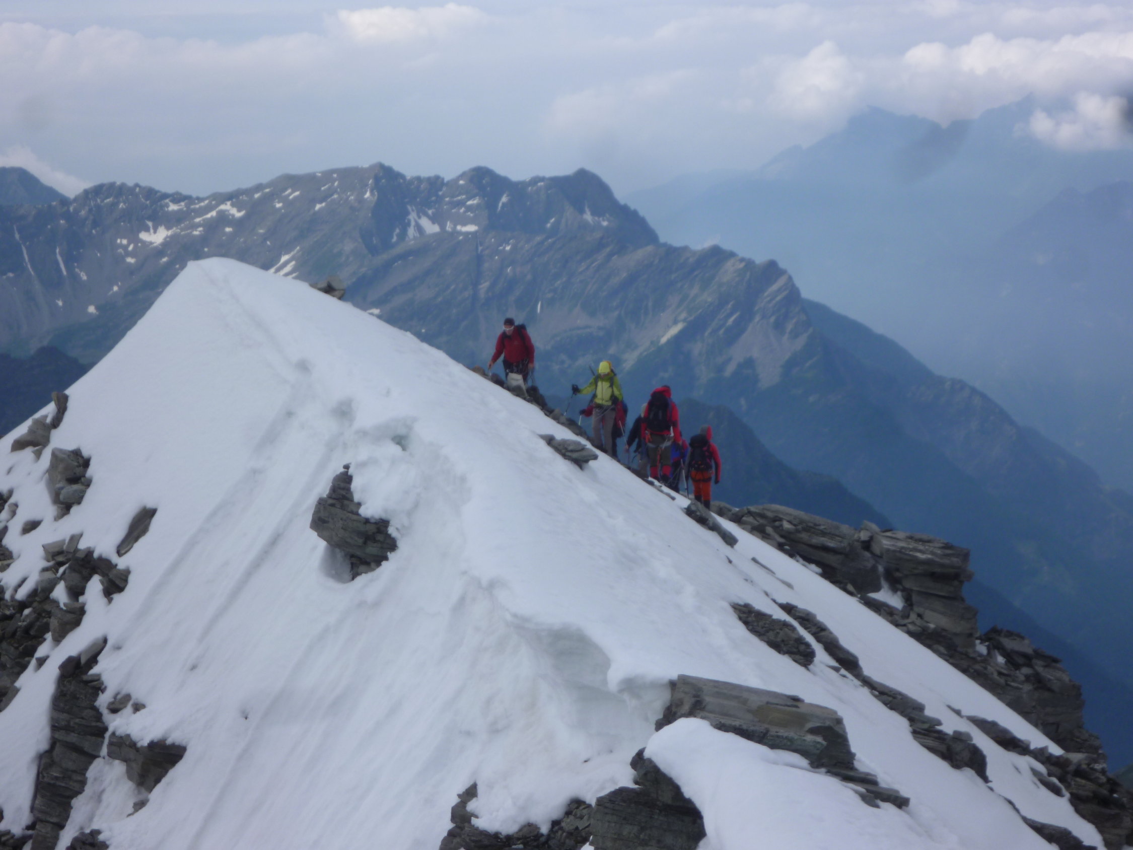 Übernachtung in der Adula UTOE -Hütte (2393 m), sehr nettes Personal! Start zum Rheinwaldhorn/Cima dell´Adula (ital.) nach Frühstück um 05:30 Uhr. Am Gipfel um 9 Uhr. Abfahrt durch das Valle Carassina mit Mountainbike, steinig aber zügig :)