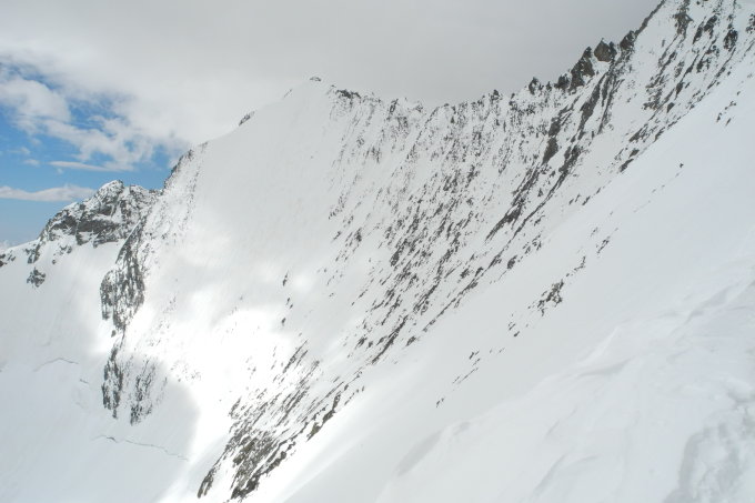 Beste Verhältnisse auf der ganzen Tour. Der Verbindungsgrat bis zum Sattel mit Steigeisen. Der Wiederaufstieg ohne.