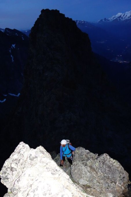Diese Klettertour findet in einer wilden und einsamen Umgebung statt und wir waren zwei Tage alleine unterwegs. Die gesamte Tour ist lang und fordernd und sollte nicht unterschätzt werden. Der Abstieg vom Gipfel bis nach Niewärch beträgt satte 2000 Hm. Wir starteten um 3.45 und erreichten Niewärch um 15.45 – der letzte Abschnitt durch den kühlen Stollen (mit Stirnlampe denn es ist stockdunkel) war dann schon erfrischend denn gestern war es brütend heiss… wichtig ist daher auch genügend Wasser mit sich zu führen.