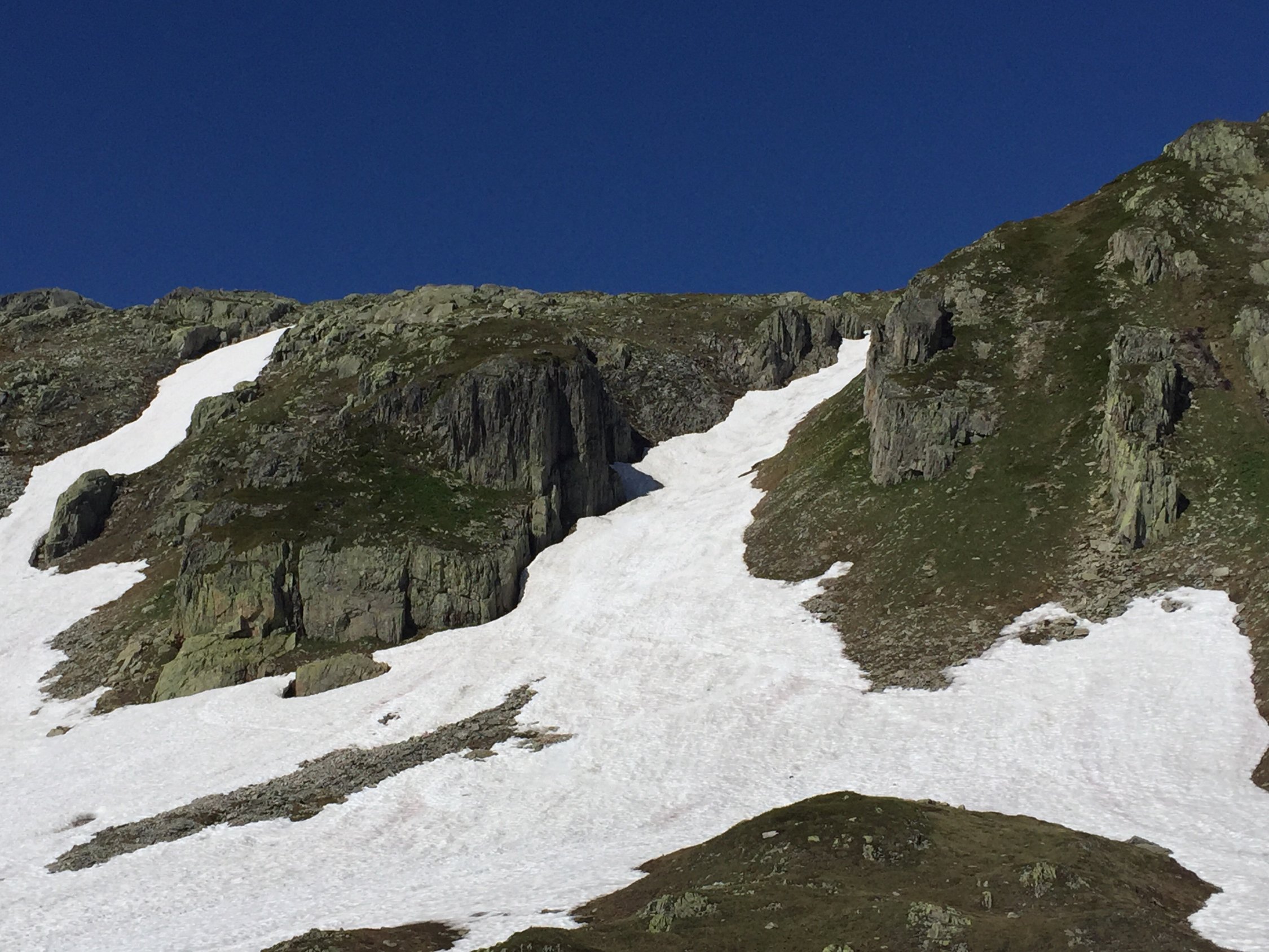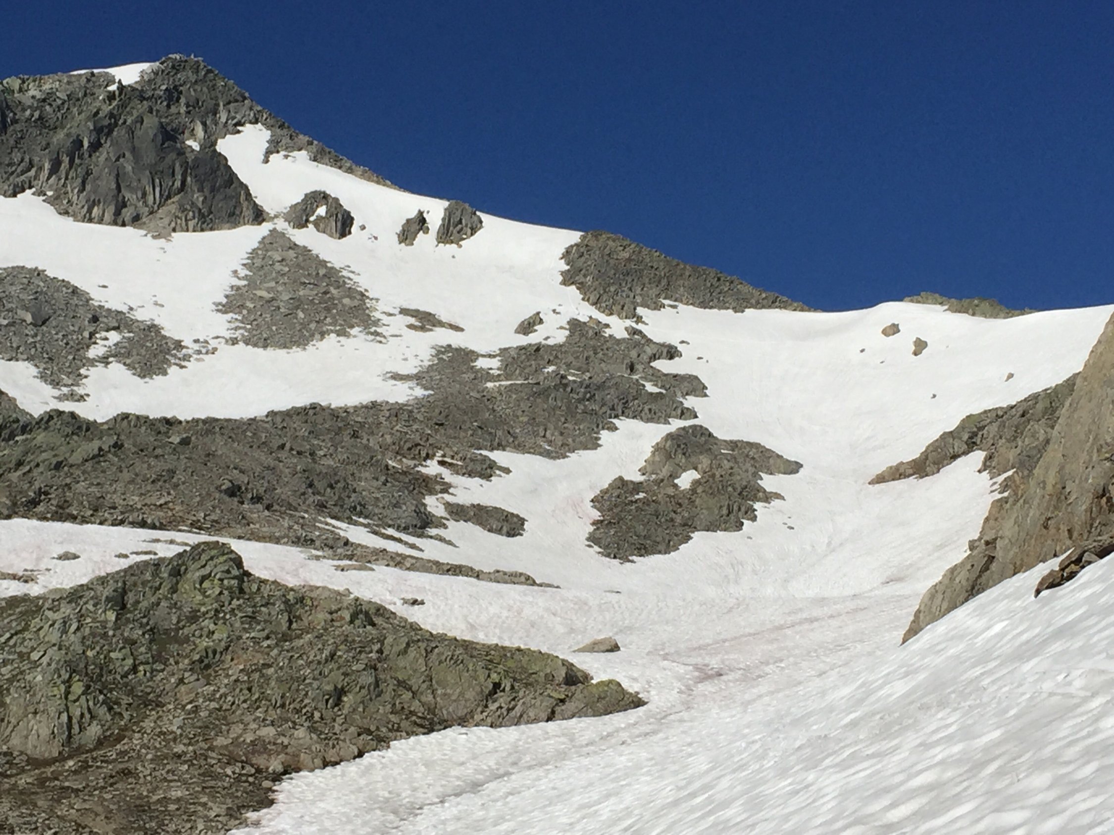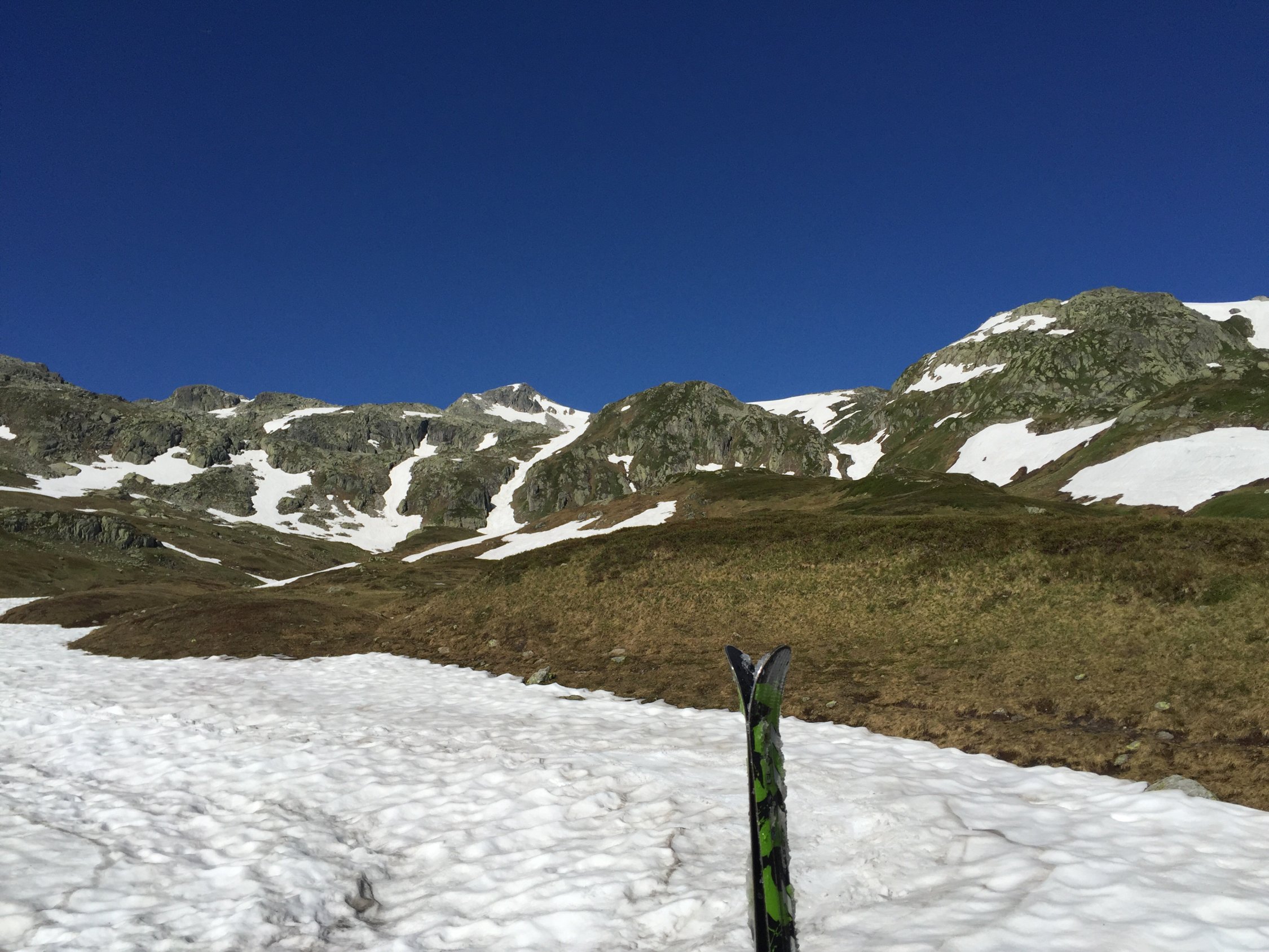 Ich konnte es noch nicht lassen und wollte die Ski noch nicht ins Sommerquartier stellen. Das Sidelhorn bot sich als Schlusstour an, und meine Erwartungen wurden erfüllt. Die Bullenhitze hat seit letzter Woche viel Schnee genommen, aber immer noch muss man im Aufstieg bis zum Skidepot nur einmal kurz tragen, nämlich vor dem ersten Couloir. Danach geht es immer mit Fellen bis kurz unter den Grat (ich wählte heute den Grat rechts vom Gipfel, hatte noch weiter oben Schnee). Dort kurz zu Fuss auf den Grat und dann auf diesem weiter, zuerst bis zum Skidepot und dann zum Gipfel. Nochmal die Aussicht genossen, die Einsamkeit auch, und die obligaten Gipfelföteli gemacht. Dann runter zu den Ski, und im gutmütigen Sommerschnee die letzten Schwünge einer tollen Skisaison gedreht. Gefahren bis Höhe Totensee, und das am 1. Juli... Ein bisschen Wehmut war auch dabei, die Berge sind zwar immer schön, aber nie schöner als auf Ski!