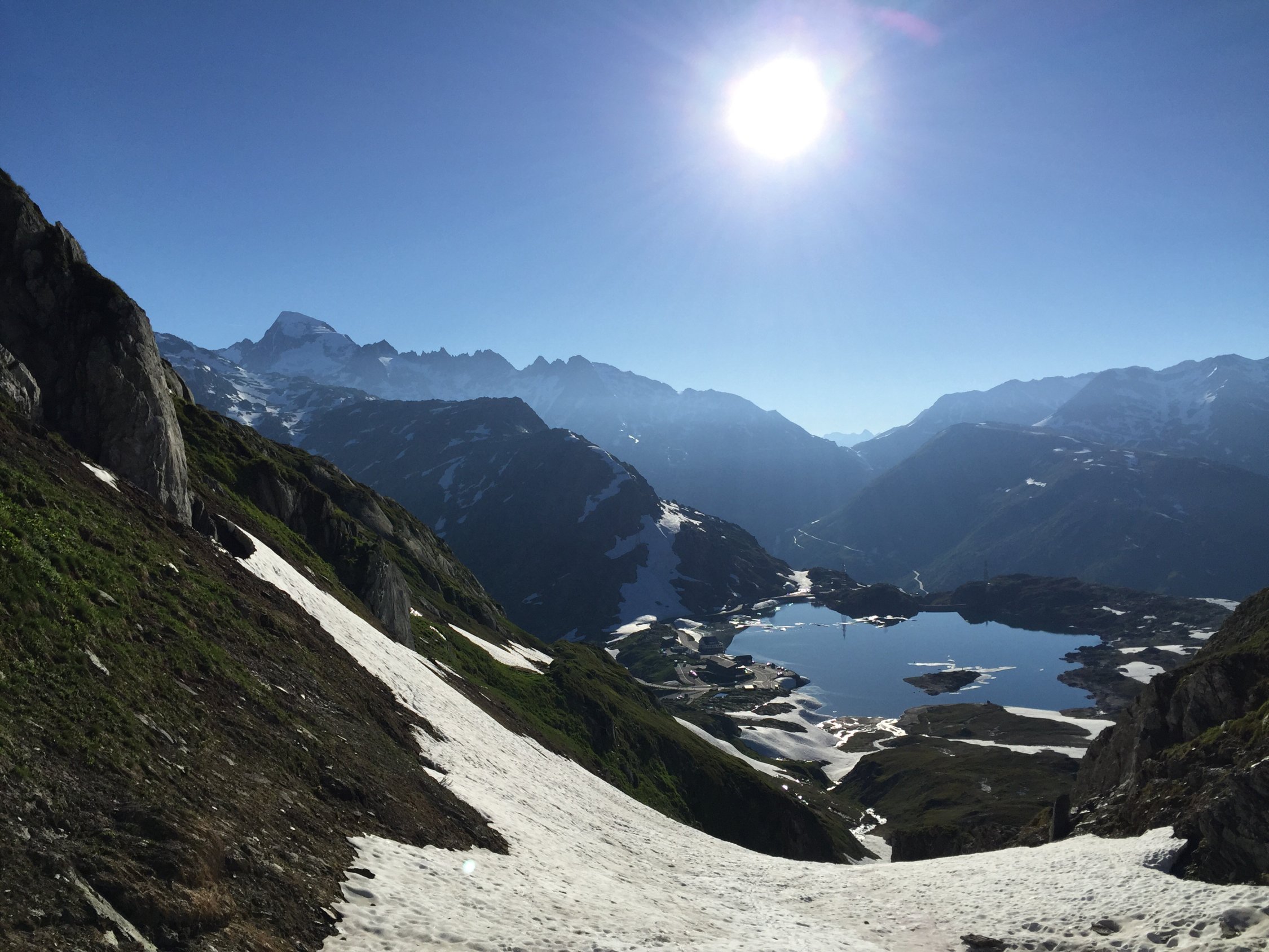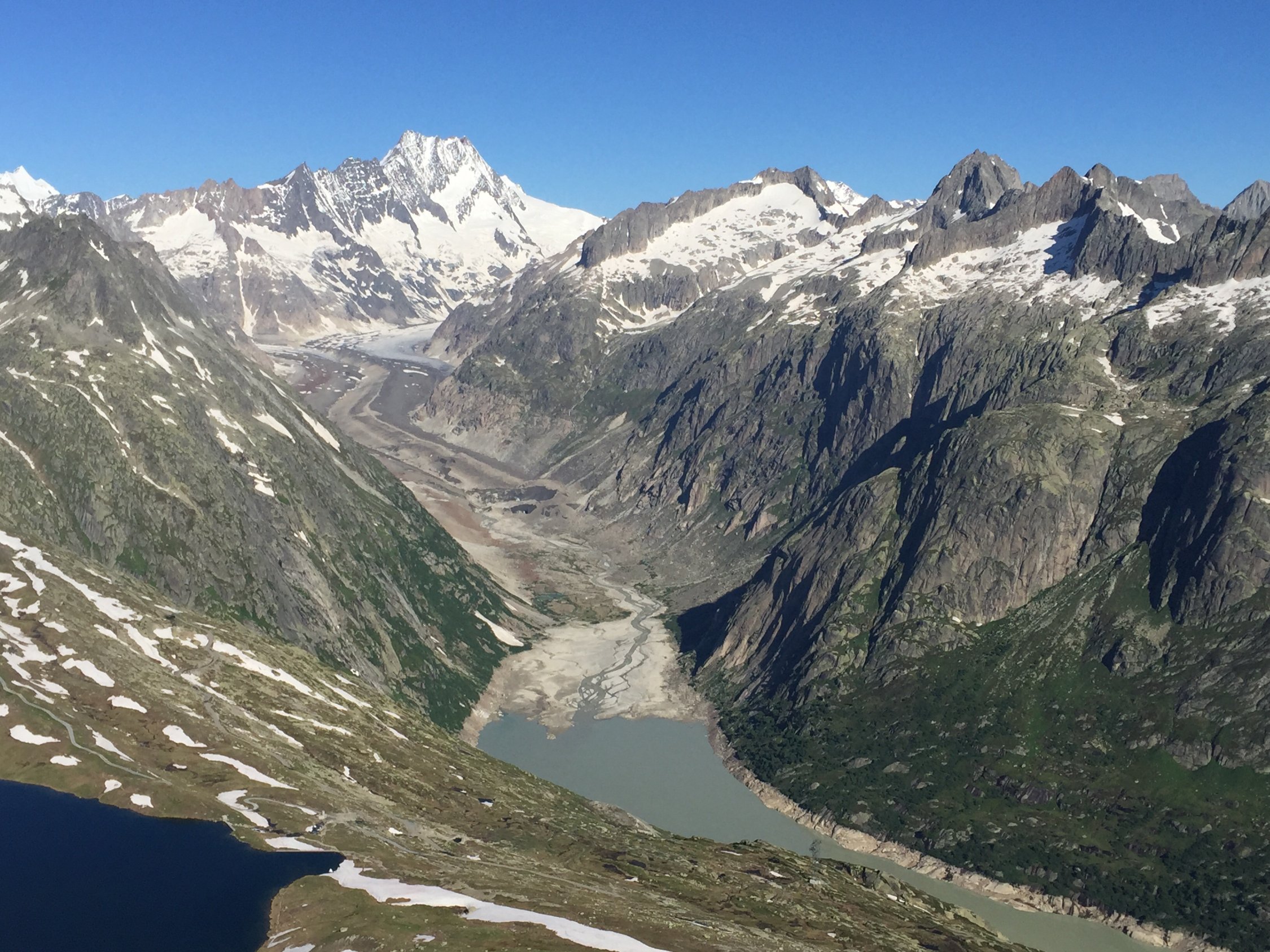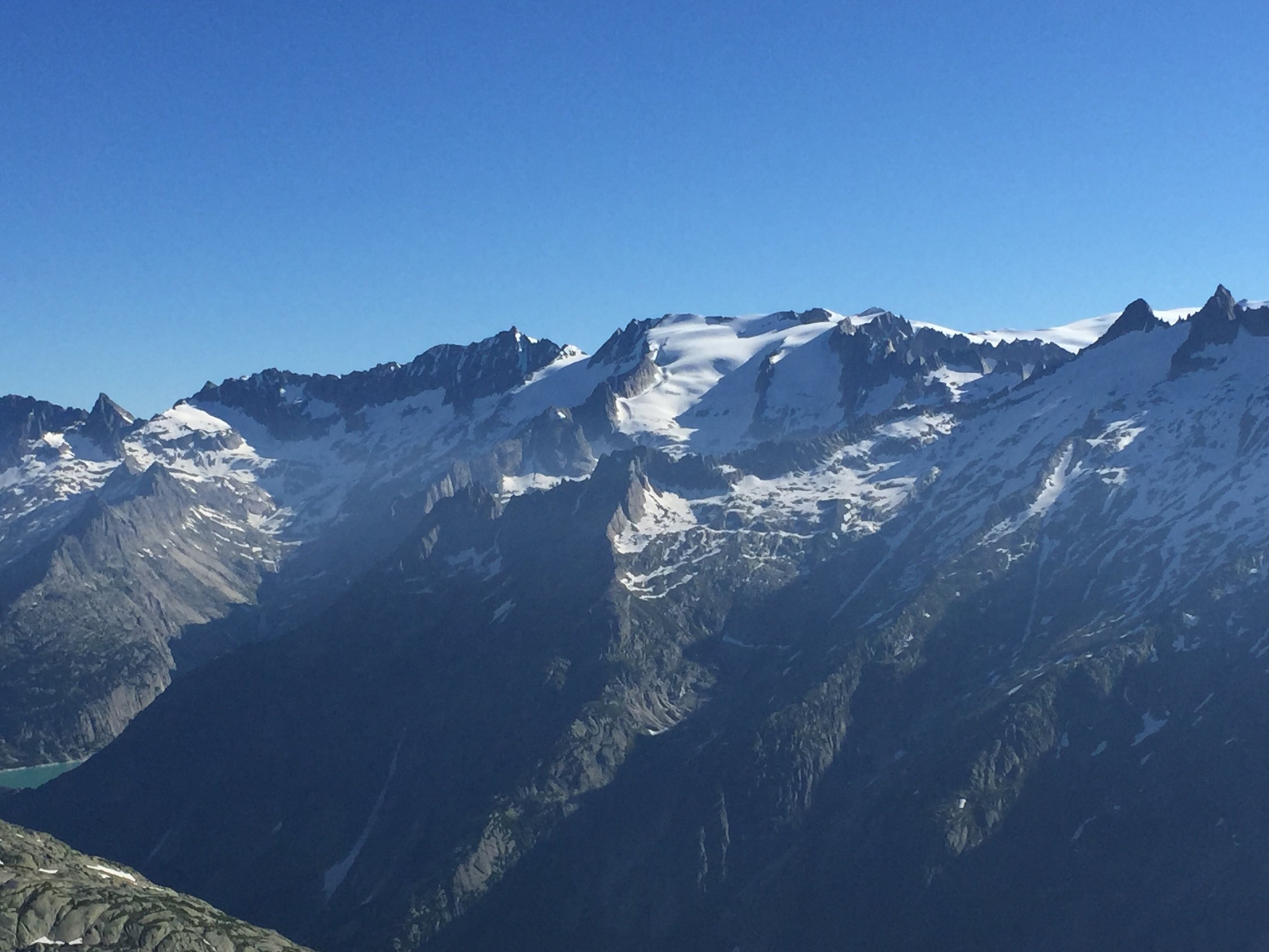 Ich konnte es noch nicht lassen und wollte die Ski noch nicht ins Sommerquartier stellen. Das Sidelhorn bot sich als Schlusstour an, und meine Erwartungen wurden erfüllt. Die Bullenhitze hat seit letzter Woche viel Schnee genommen, aber immer noch muss man im Aufstieg bis zum Skidepot nur einmal kurz tragen, nämlich vor dem ersten Couloir. Danach geht es immer mit Fellen bis kurz unter den Grat (ich wählte heute den Grat rechts vom Gipfel, hatte noch weiter oben Schnee). Dort kurz zu Fuss auf den Grat und dann auf diesem weiter, zuerst bis zum Skidepot und dann zum Gipfel. Nochmal die Aussicht genossen, die Einsamkeit auch, und die obligaten Gipfelföteli gemacht. Dann runter zu den Ski, und im gutmütigen Sommerschnee die letzten Schwünge einer tollen Skisaison gedreht. Gefahren bis Höhe Totensee, und das am 1. Juli... Ein bisschen Wehmut war auch dabei, die Berge sind zwar immer schön, aber nie schöner als auf Ski!