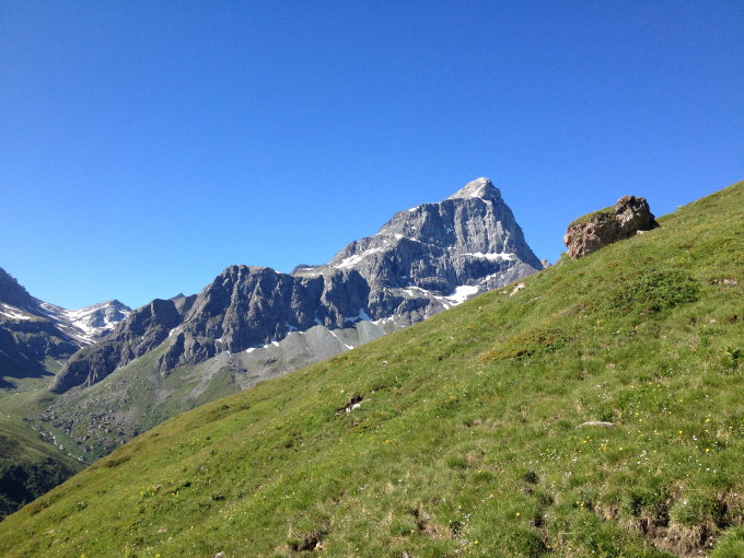 Im Moment sind die Verhältnisse für diese beiden recht selten begangenen Gipfel geradezu ideal: Die Couloirs sind alle noch mit Schnee aufgefüllt. Wenn man nicht zu früh ist, reichen ein paar Skistöcke. Frühaufsteher sind bei klaren Nächten mit Steigeisen gut bedient.