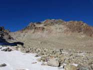 Für den Abstieg folge ich nur kurz den SW-Grat weiter, steige 10 Meter einfach hinab und rutsche auf sandigem Kies genussvoll bis zu den Zwischenfelsen hinab, traversiere kurz nach Osten und rutsche über Kies und Schutt weiter hinab bis das festere Geröll dies nicht mehr zulässt. Nach der Schuhentladung laufe ich über festem Geröll und zuletzt über Wiese hinab zum Ausgangspunkt.