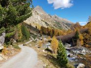 Mit dem E-Bike fahre ich auf dem Wanderweg durch das Suvretta da Samedan zur Alp Suvretta und auf einem Forstweg via Spinas weiter bis Bever, wo mich die RhB und das Postauto wieder in das Val Müstair zurückbringt.