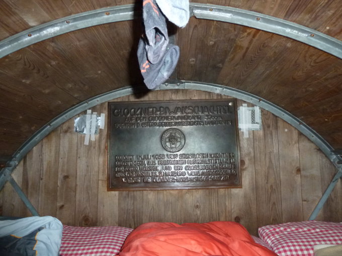 Aufstieg am 28.6. von der Franz-Josefs-Höhe zur Oberwalderhütte (Gletscherrest, seilfrei machbar). Eingehtour am 29.6. auf den Schneewinkelkopf über Nordwand - auch super Verhältnisse (kaum Blankeis, meist 10 cm Firnauflage). Vom Gipfel Schneewinkelkopf Abstieg über Romariswandscharte zurück auf den Oberen Pasterzenboden. Dann auf der rechten Seite vom Gletscher leicht absteigend unter den Seracs hindurch (ganz schnell) bis unter die Falllinie Glocknerbiwak. Aufstieg aufs Glocknerbiwak seilfrei durch inzwischen sehr weichen Trittfirn. Die letzten 10 Meter sind Kletterei im 3+ Grad (oder links im Schnee weiträumig zu umgehen, ist aber ein Umweg). Im Biwak waren wir glücklicherweise die Einzigen.