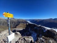 Gute Rundsicht auf dem Gipfel. Abstieg nach Pkt.2489 techn. unschwierig und trocken/aper, aber dank Rollschotter stellenweise etwas Rutschgefahr. Nur ein anderer Berggänger auf gleicher Route im Aufstieg, im Abstieg ein paar Leute.