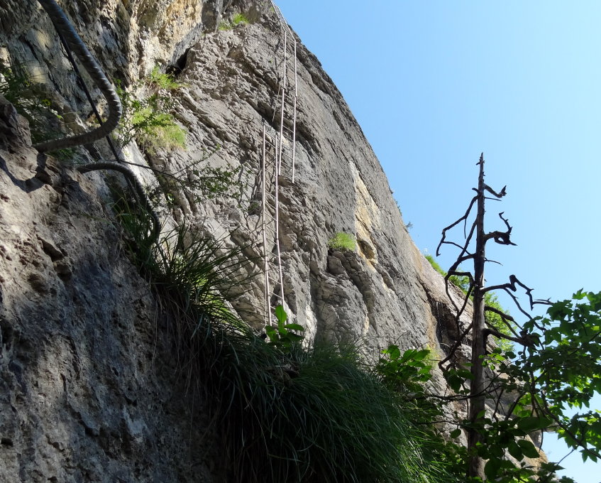 Ist es tropisch heiss und will man trotzdem etwas unternehmen, da bietet sich der Mürrener Klettersteig als gute Lösung an. Weil es zuerst nach unten und dann meistens dem Hang nach führt, sind die Ansprüche an Kondition moderat. Einen guten Teil geht man durch den Wald, so hat man einigermassen Schutz vor der Sonne. Und Aufgrund der Thermik hat man dauernd Luftbewegung. Dazu ist dieser Klettersteig sehr spektakulär: Wunderbare Aussicht auf die Berner Alpen und eindrückliche Tiefblicke. Man sollte schwindelfrei sein und ein wenig gute Nerven haben. Es hat zwei Dreiseilbrücken, eine längere etwas durchhängende und eine kurze feste. Eine äusserst ausgesetzte Stelle und am Schluss eine spektakuläre Hängebrücke, die ein wenig gewöhnungsbedürftig ist, nämlich weil das Sicherungsseil nur rechts läuft und links hat man nur alle drei Meter eine Möglichkeit sich zu halten. Dies schafft eine gewisse Verunsicherung. Bei Nässe ist vor allem die absteigende Partie mühsam und ungünstig. Der ganze Steig ist perfekt ausgerüstet, wirklich ein Genuss.