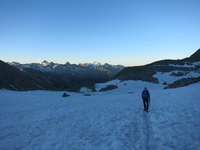 Im Abstieg war der Kleinglocknerkees schon recht aufgesulzt; Ködnitzkees war hingegen schon sumpfig und tief…