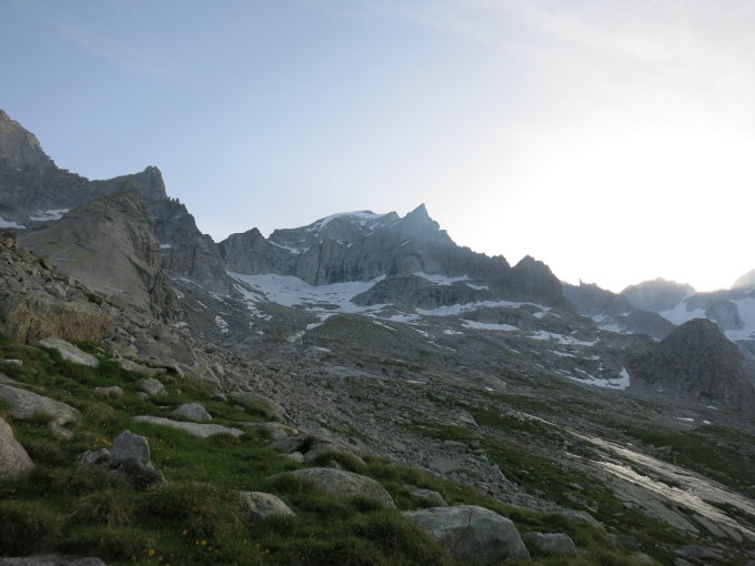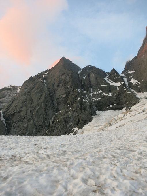 Verhältnisse im gesamten Gebiet recht gut, es gibt zwar noch Schnee, aber der stört nicht. Zustieg über den Gletscher z.Z. super zu machen, wenn man die richtige Linie trifft nur Gehgelände (am besten rechts an der mittleren Bruchzone vorbei und darüber zur Wand queren). Randspalte z.Z fast nicht vorhanden, super einfach in den Fels zu kommen. Wir sind links der markanten Rinne (eher ein Wasserfall im Moment) über einfaches gestuftes Gelände eingestiegen. Sehr nass und z.T brüchig wie Keks. Nach ein paar Seillängen wird der Fels dann immer besser und schnell fängt der Genuss an! dann bis zum Firnfeld in Gipfelnähe tolle Kletterei in genialem Fels. Keine Sorge wegen der Linienfindung, ab halber Wandhöhe kann man in mehreren Linien in recht ähnlicher Schwierigkeit klettern, als wir das erst mal raus hatten und nicht bei jeder Seillänge schauen mussten ob wir richtig sind wars richtig lässig. Oben dann Firnfeld, auf dem man den extrem brüchigen Grataufbau rechts umgehen kann und dort auf den Normalweg stößt. Weiterweg in sehr weichem Schnee kein Problem. Abstieg bis auf ein paar Schneefelder aper und gut zu gehen, im Kar unterm Cengalo tolles Abfahren auf Sommerschnee.