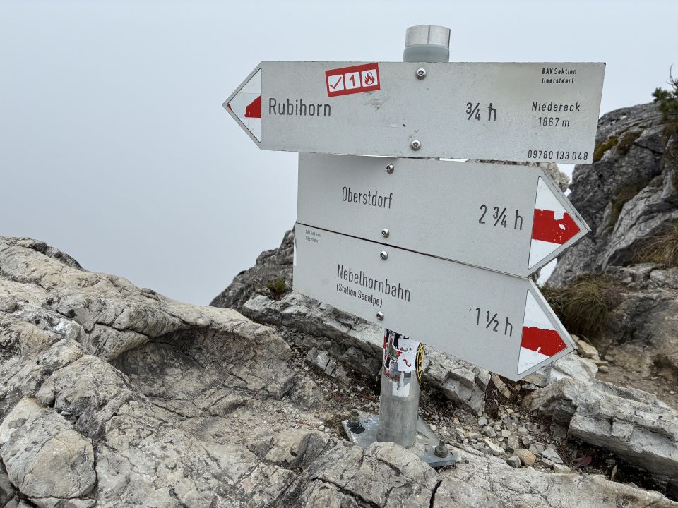 Rubihorn aktuell wg felssturz ca. 50hm aus (Südwand)unter Gipfel nicht machbar!! Der Sturz ist nach / hinter der Verzweigung gaisalpe niedereck!! Es muss auch nicht jeder die Absperrung übersteigen und gucken, es ist wirklich so!!! Sonst Weg von seealpe hoch bestens. Ein Schmankerl gabs doch noch, Gaisalphorn! Zum Wetter „seltsam im Nebel zu wandern, kein Berg gleicht dem andern……“. Frei nach H. Hesse