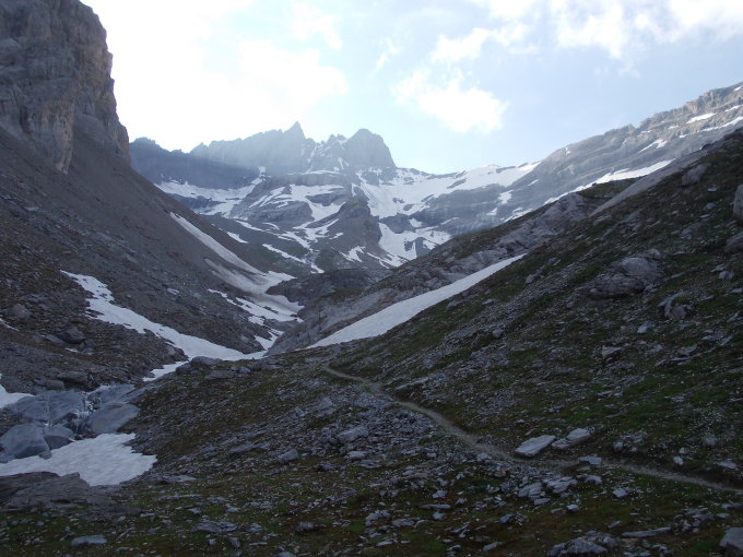 Biwakplatz Sandböden: fantastischer Ort - eine Schwemmebene, ergo reichlich Wasser, in einem herrlichen Bergkessel mit Fokus zum Ringelspitz. Ausreichend flache Plätze und schützende Boulder. Ich habe es mir nicht nehmen lassen, dort unterm freien Himmel zu schlafen :-)