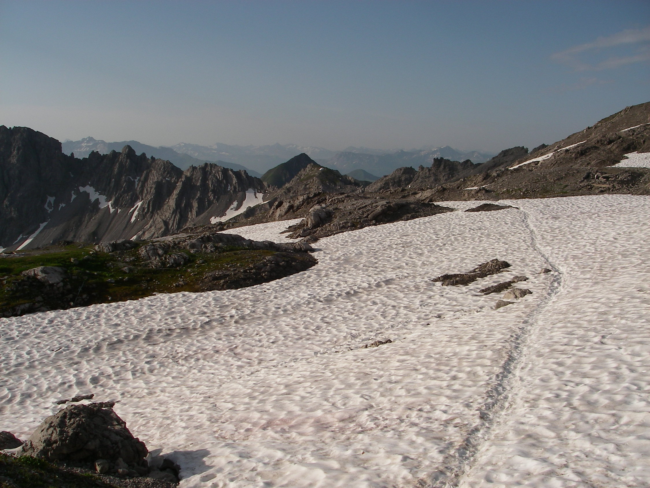 Noch recht viel Schnee ab Totalphütte. War um knapp 09:30h auf dem Gipfel, im Aufstieg war der Schnee noch sehr gut (ohne Steigeisen) zu gehen, auf dem Abstieg war er schon deutlich weicher. Temperaturen morgens sehr angenehm, beim Bösen Tritt wehte auch noch ein kleines Lüftchen. Mittags war es natürlich schon deutlich heisser.