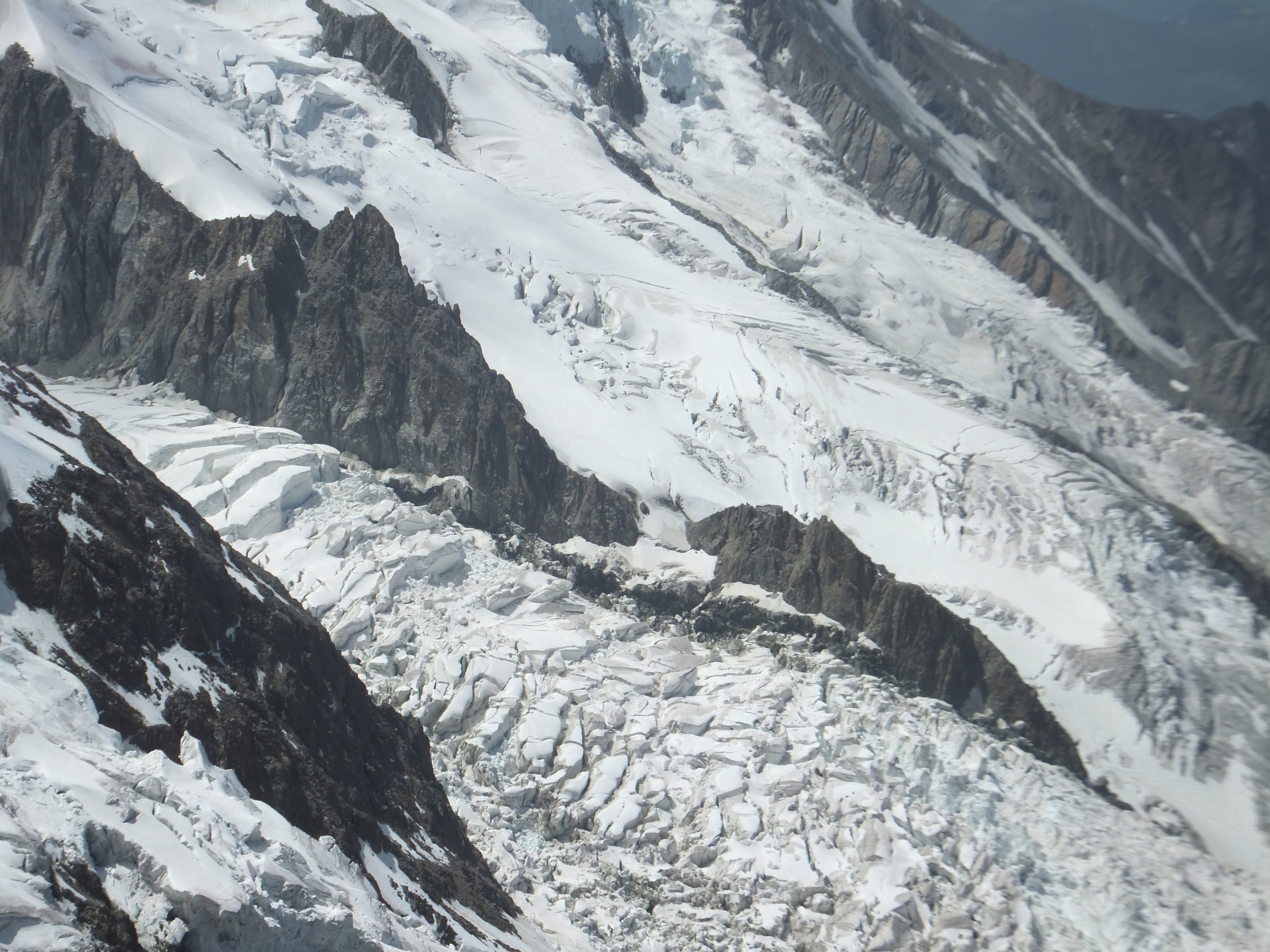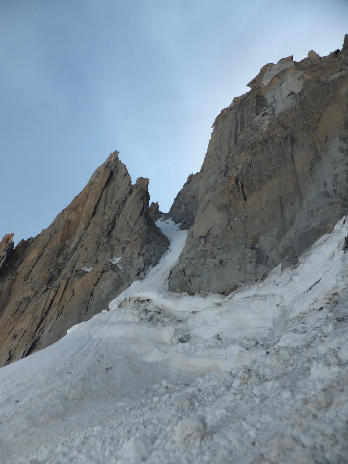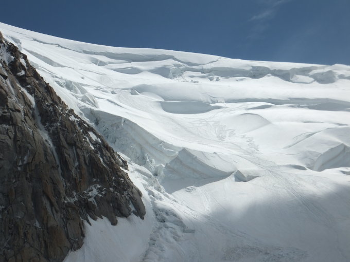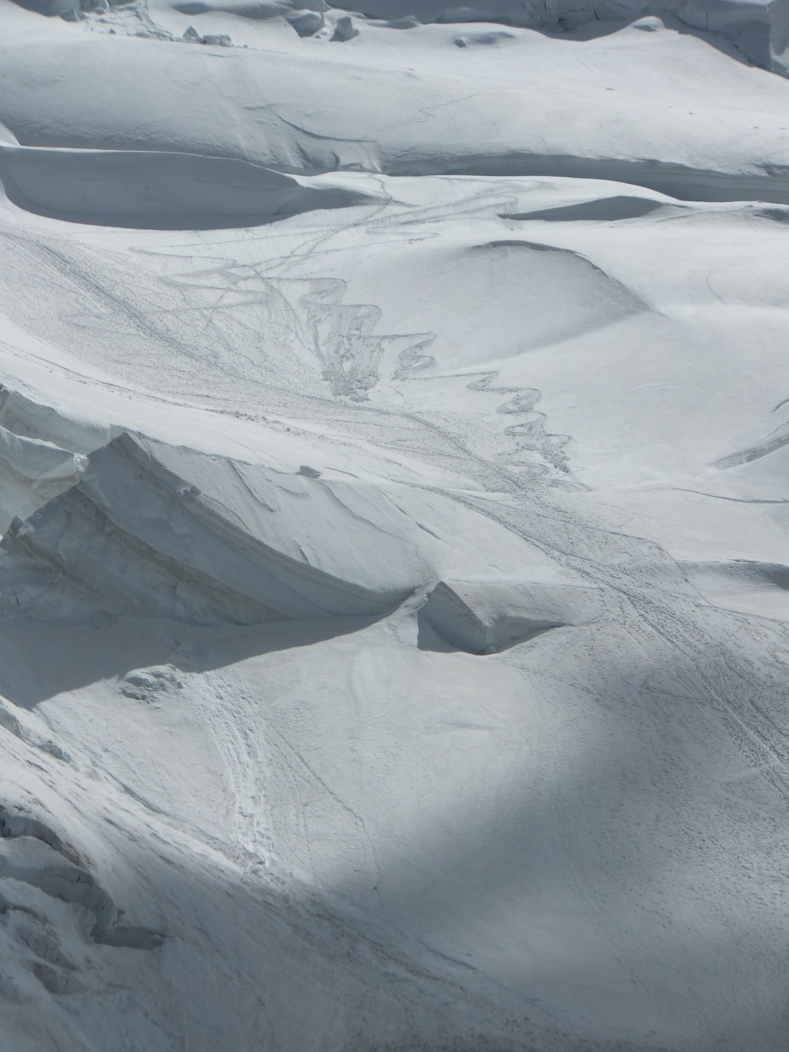 Die Nordabfahrt vom Tacul war eine kleine Entschädigung. Die 2. Spalte konnte nicht mehr so gut wie am Morgen überwunden werden. In der Zwischenzeit gab es dort einen 2m-Abbruch. Diese Stelle ist am Nachmittag rechts umgangen worden.