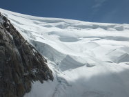 Ziel war der Mont Blanc. Wegen schlechter Sicht (teilw. nur 10m) und starkem Wind im Cole de la Brenva umgekehrt. Gemäß Wetterbericht sollte es ab Nachmittag bewölkt sein, tatsächlich war es genau umgekehrt.