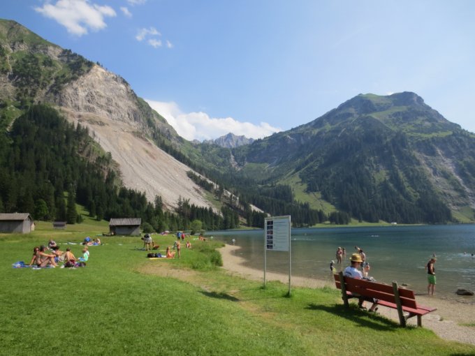 Nach der Rückkehr ins Tal kann man sich mit einem Bad im immer kalten Vilsalpsee erfrischen.
