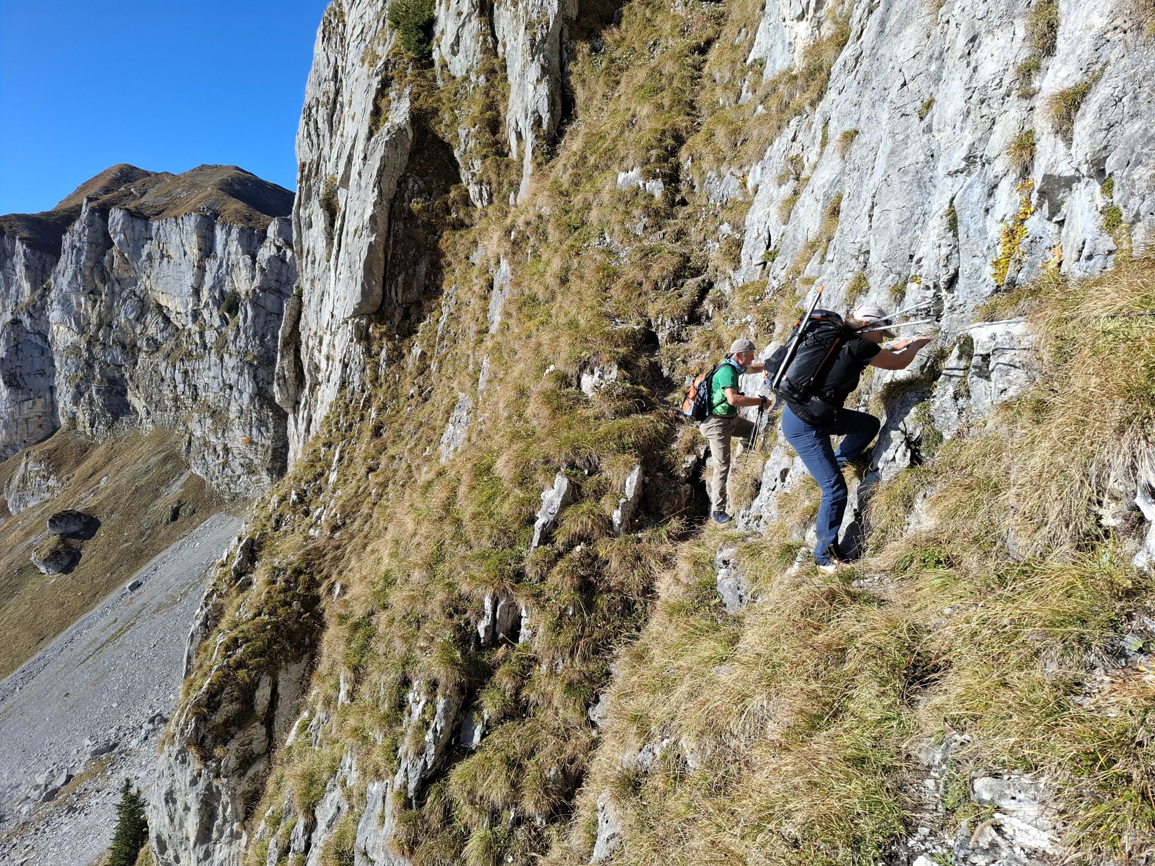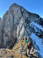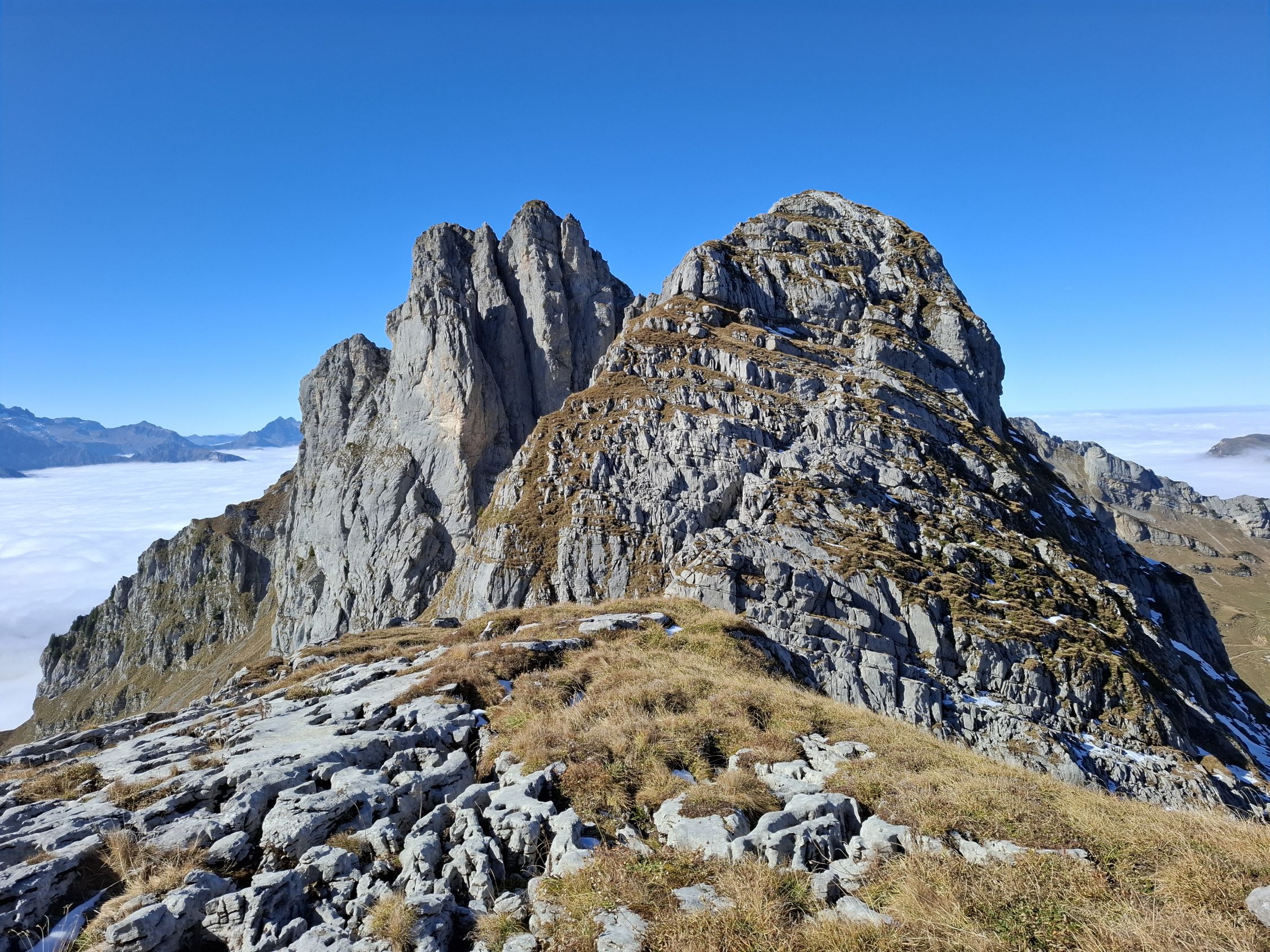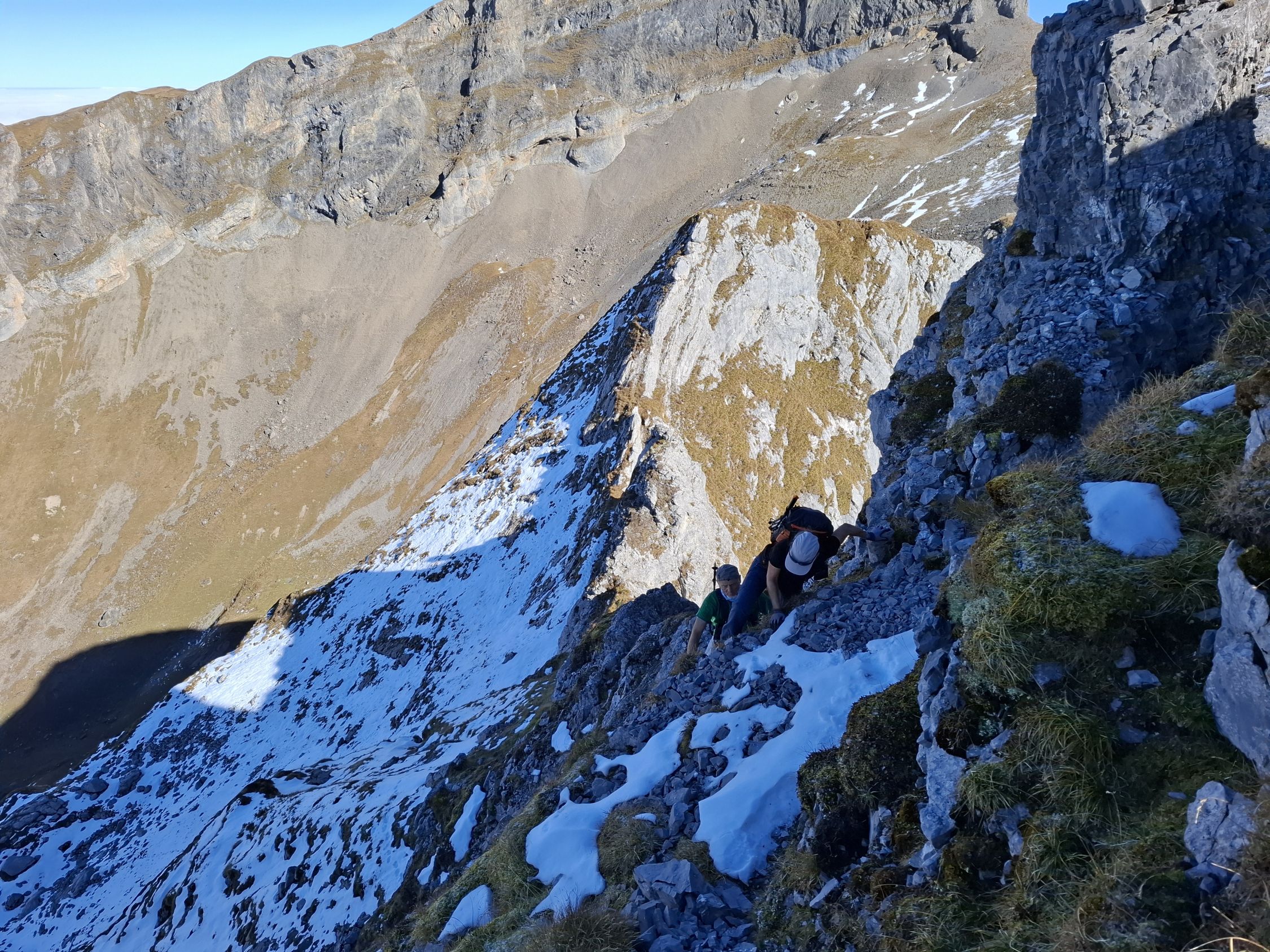 eine herrliche Route, die sicheres Gehen auf Graten und in steilem Gelände und Klettererfahrung bis zum 2ten erfordert.