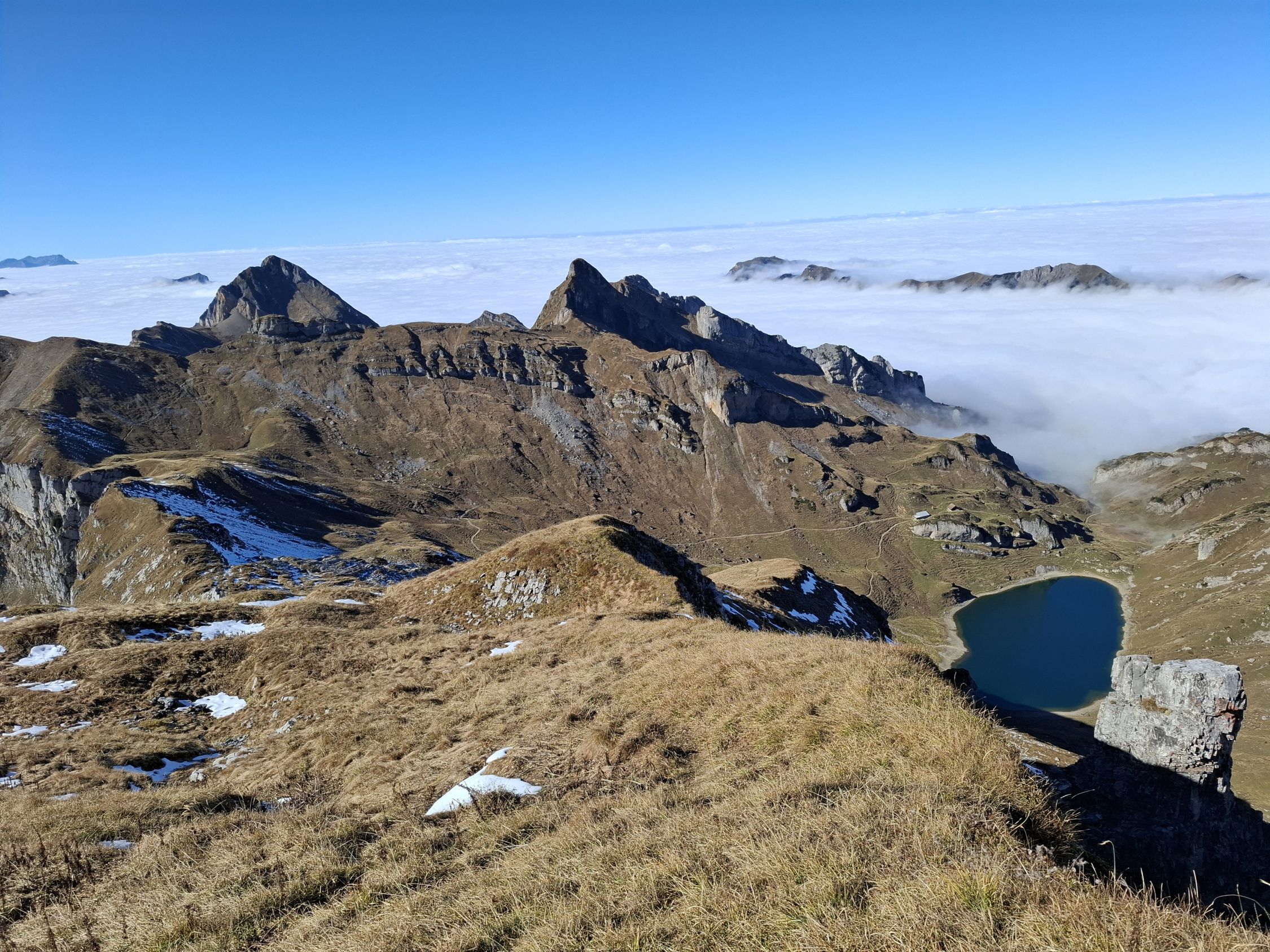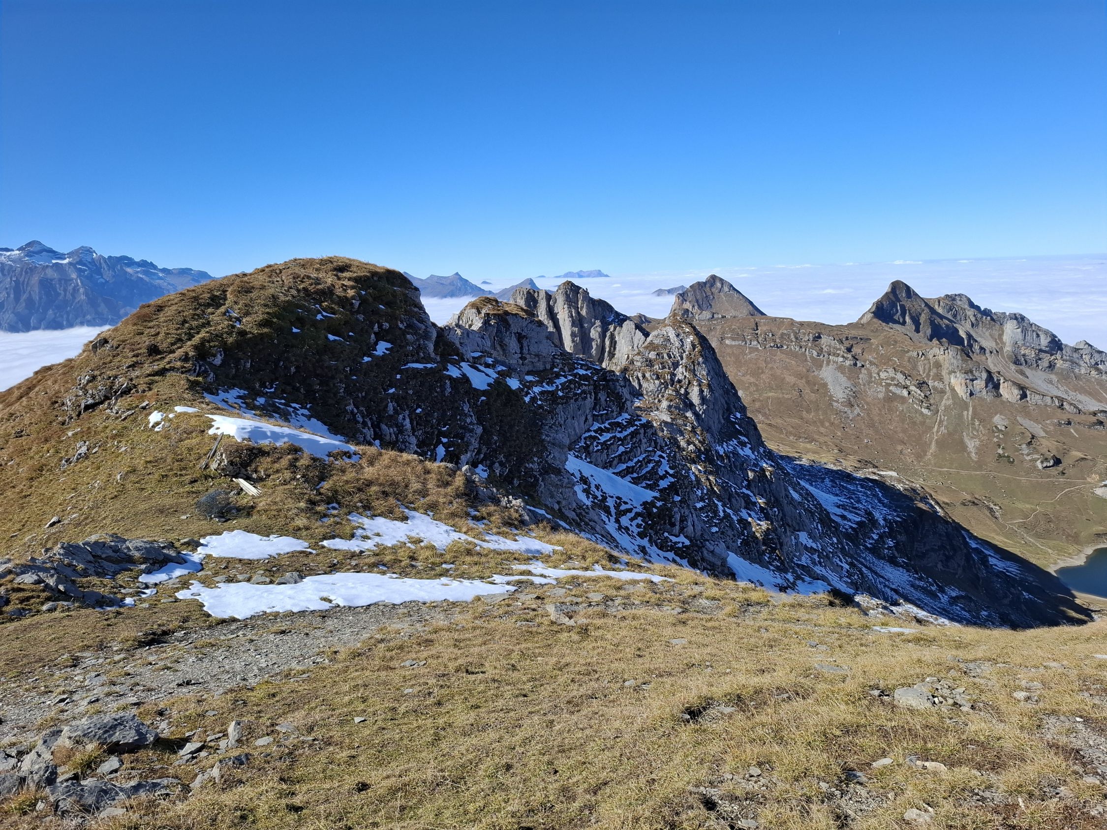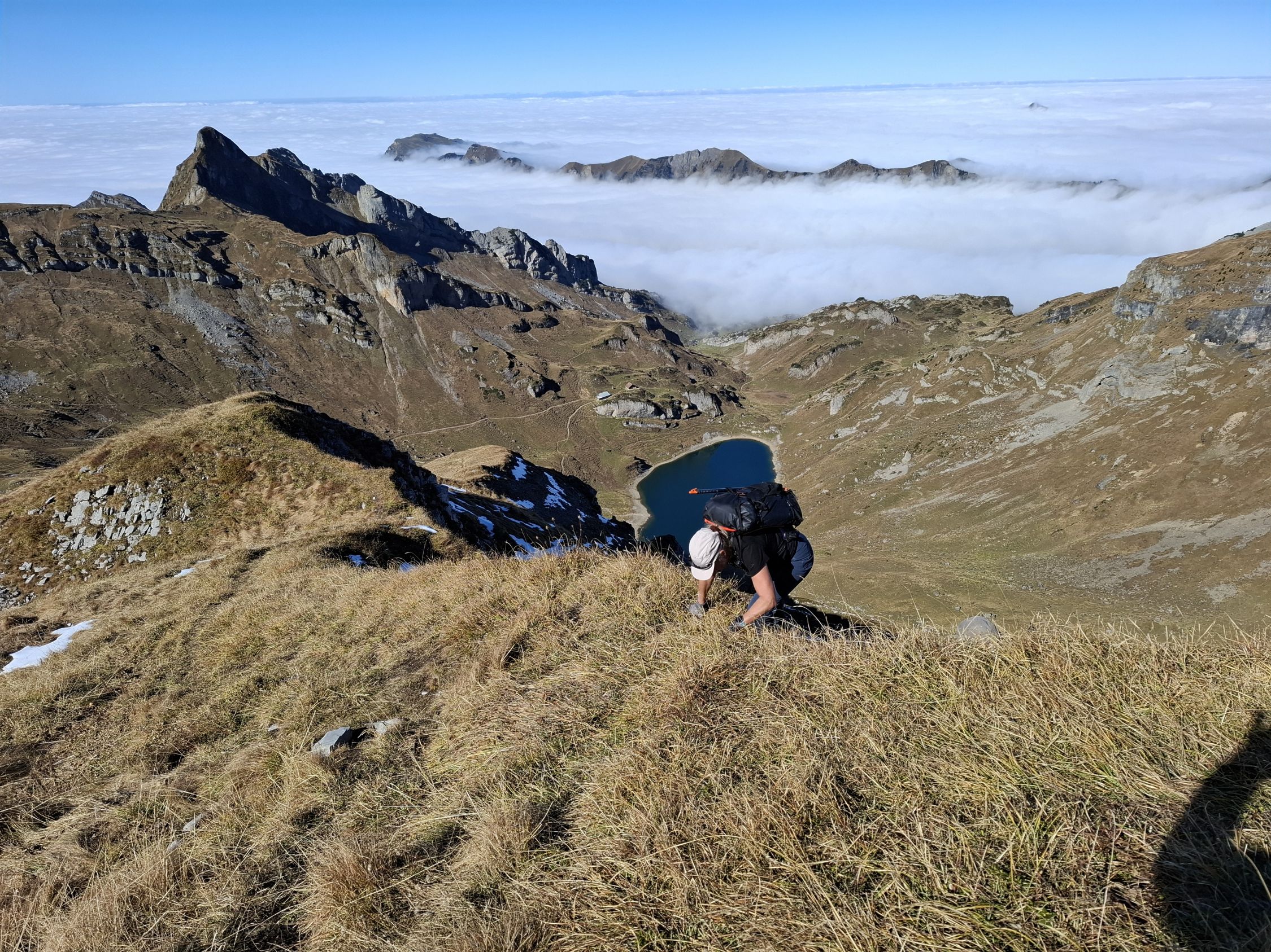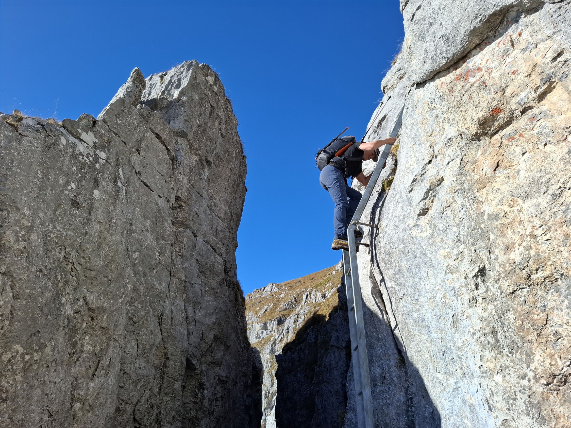 eine herrliche Route, die sicheres Gehen auf Graten und in steilem Gelände und Klettererfahrung bis zum 2ten erfordert.