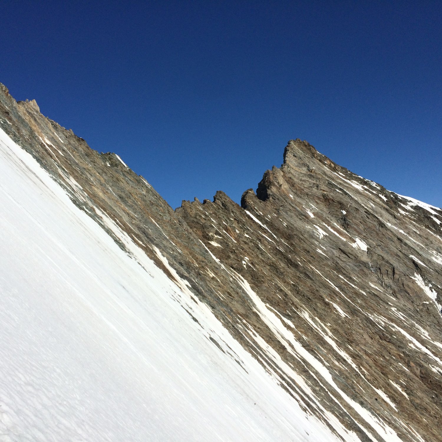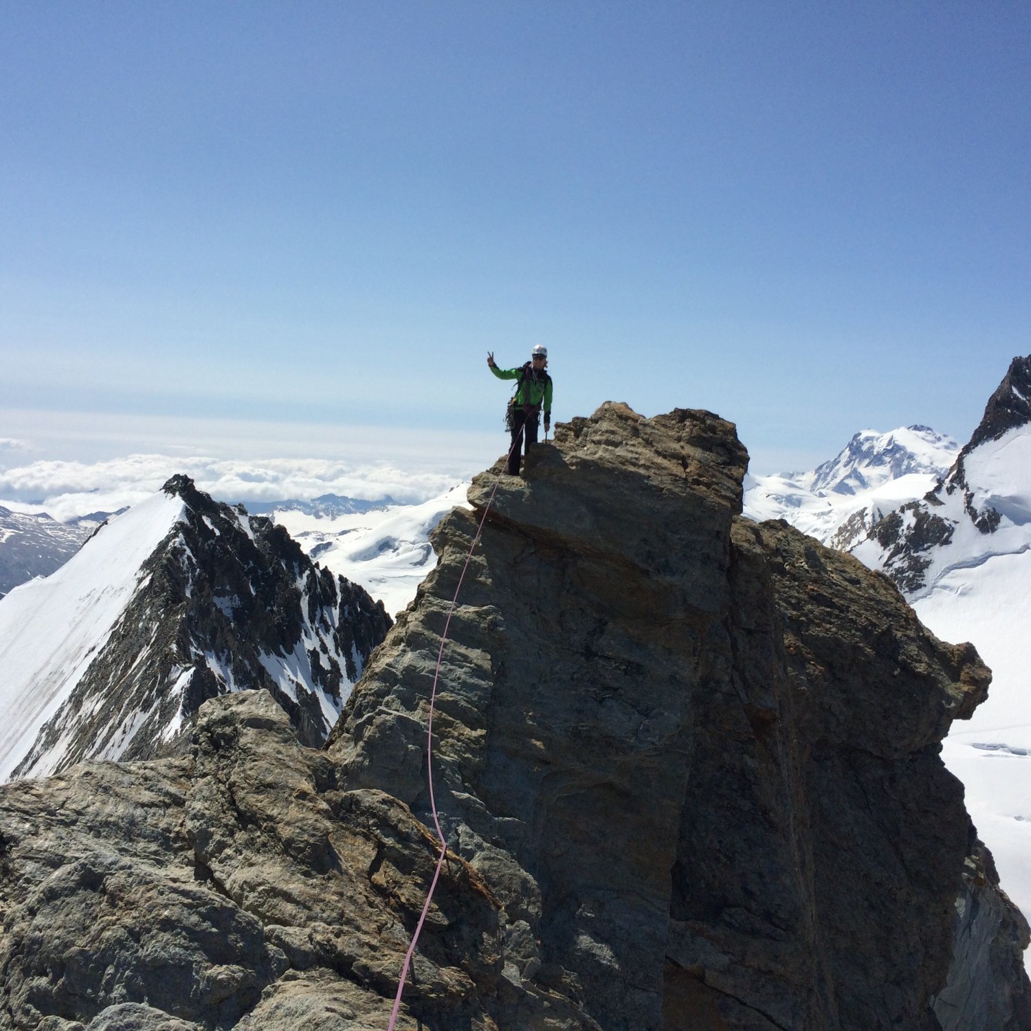 Perfekte verhältnisse! Gesamter Grat ist trocknen. Wir sind die Tour durchgehend am laufenden Seil gegangen, bei diesen Verhältnissen ist der gesamte Grat m.E. Hervorragend absicherbar mit Friends Gr. 0,5. - 2 und reichlich Zackenschlingen, va. kurze. Steigeisen sind momentan nur auf den letzten 100 Hm auf dem Firngrat zur Lenzspitze, auf den ersten 50 m des Weiterwegs zum Nadelhorn und natürlich für den Abstieg vom Nadelhorn notwendig. Dort wird es kurz vor Erreichen des Windjochs bereits sehr eisig, auch wenn der Normalweg auf das Nadelhorn nur mit WS+ bewertet ist, stellt dieser Bereich immer wieder eine Gefahrenstellen für weniger erfahrenen Alpinisten dar. Besser 10 min für 2-3 x Schrauben investieren als mit dem Leben bezahlen. Abstieg über den Hohbalmgletscher mittags weich aber noch gut zu gehen. Aus meiner einschätzung würde ich trotz der kurzen Distanz von einer Solobegehung dringend abraten, es hat ernsthafte, noch teilweise verdeckte Spalten über die die gut ausgetretenen Spur führt.