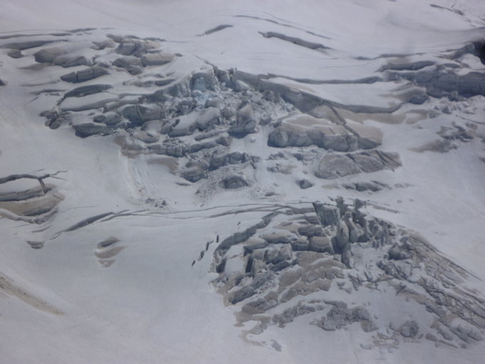 Piz Palü - Normalweg: Ein Bergsteiger (der gerade vom Palü zurück kam) schilderte, dass die Verhältnisse jetzt recht heikel seien, und in einigen Tagen wäre es noch schwieriger wegen Spalten. Route muss manchmal gesucht werden und mit Skis zu gehen ist nicht mehr ok.