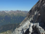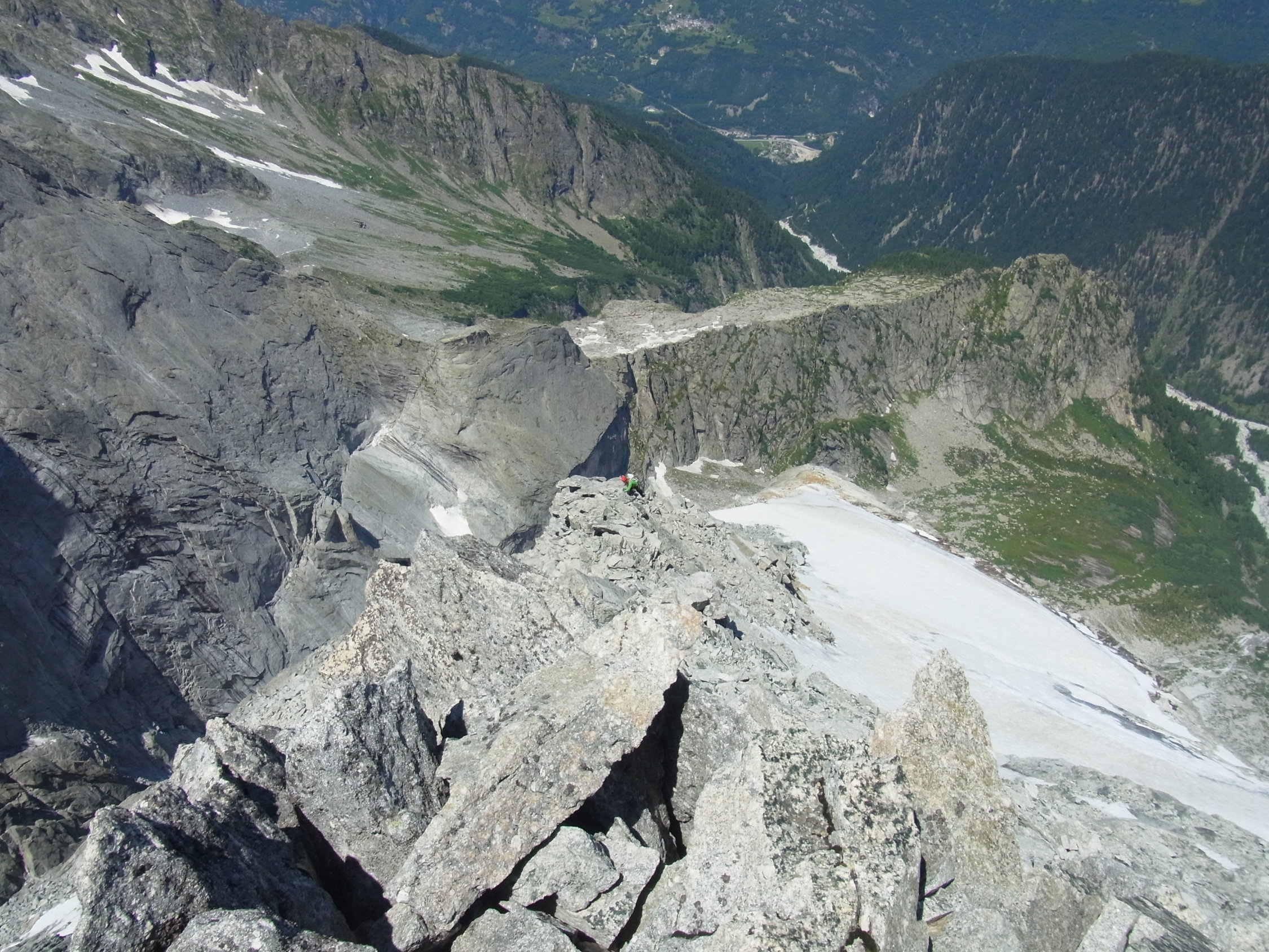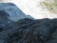 Die ersten vier Seillängen sind sehr bröselig und brüchig (wir waren wohl im linken Einstieg (siehe Topoguide; sehr gutes Topo). Diese kosten Zeit (gut investiert) und Nerven. Am Einstig kurze Passage (ca. 4 m) sehr unangenehme Mixedkletterei. Danach viele, viele schöne Seillängen. Die Route verlangt recht viel Erfahrung: der Schwierigkeitsgrad ist zwar moderat, aber mit dem Zustieg, die ersten 4 Seillängen und der recht anspruchsvolle sehr lange Abstieg machen die Tour zu einem ernst zu nehmenden Unternehmen.