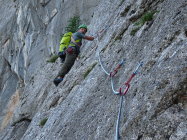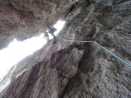 Fels trocken, manchmal Geröll (Steinschlaggefahr); schattig, daher nicht so heiß (in der 1. Länge war der Fels sogar noch richtig kalt); perfekt;