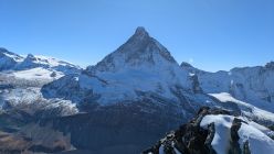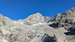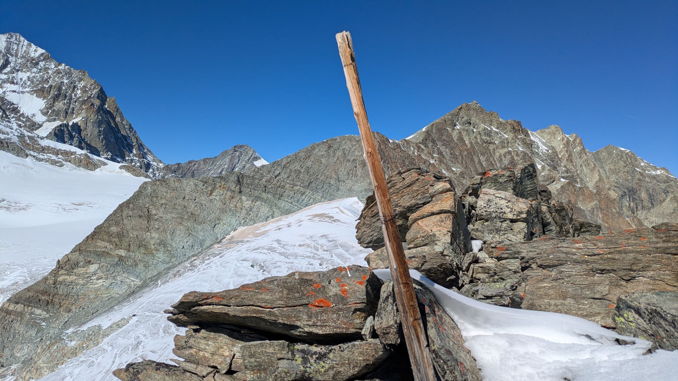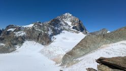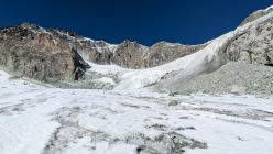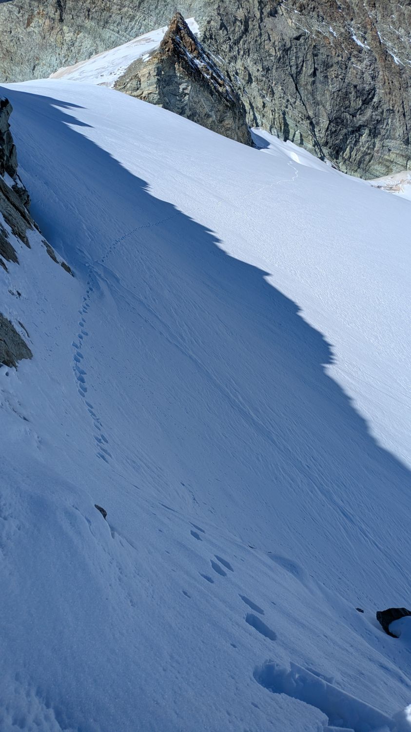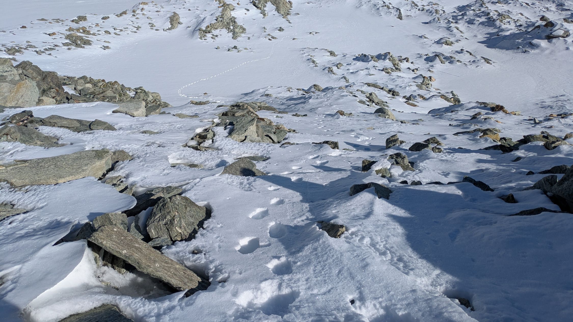 Der Gletscher ist zum Teil frisch eingeschneit, unten tragend oben pulvrig und am Gipfelhang bricht man zwischen den Steinen ein.