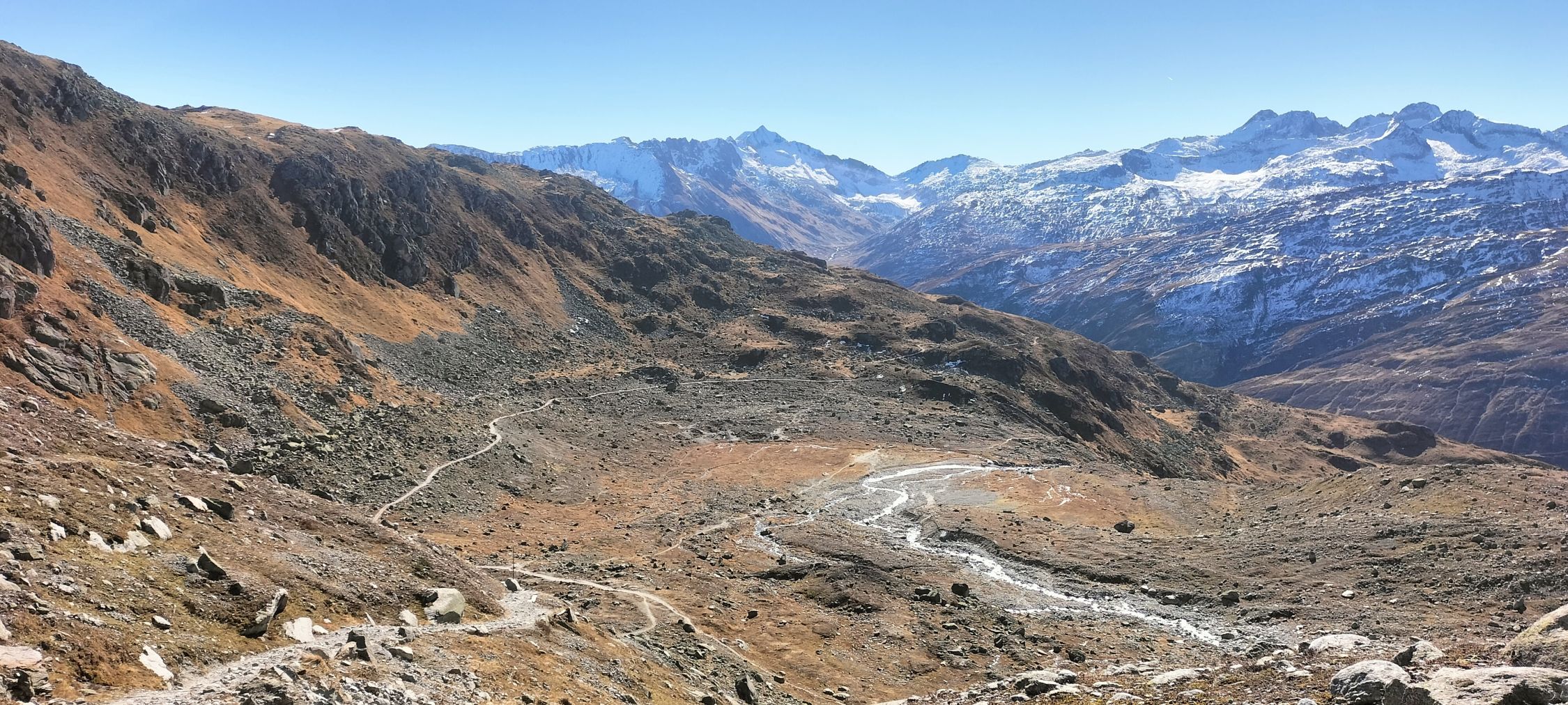 Vom Tiefenbach Tiefenbach -Täsch - Auf den Stöcken Schafberg - Albert Heim Hütte - Tiefenbach. Alles dem rot weiss markierten Weg folgen.