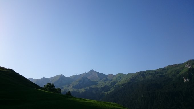 sehr warme etwa 25°C am Morgen in Niederrickenbach. Wolkenloser Himmel und trockene Pfade mit 2 kleinen Schneefeldern im Abstieg richtung Brisenhuis