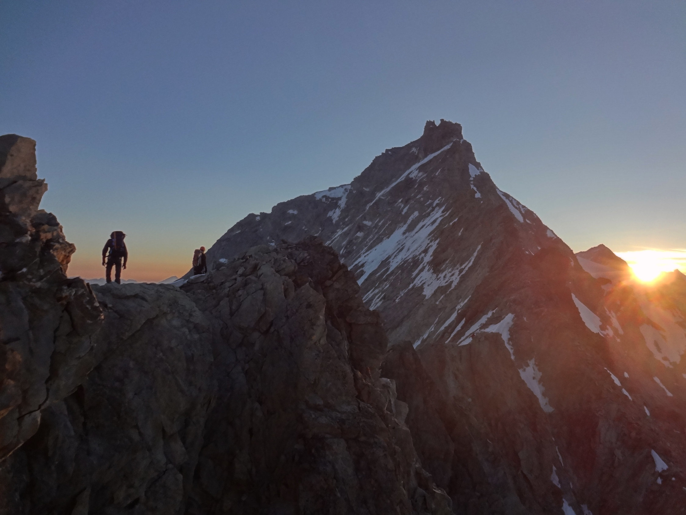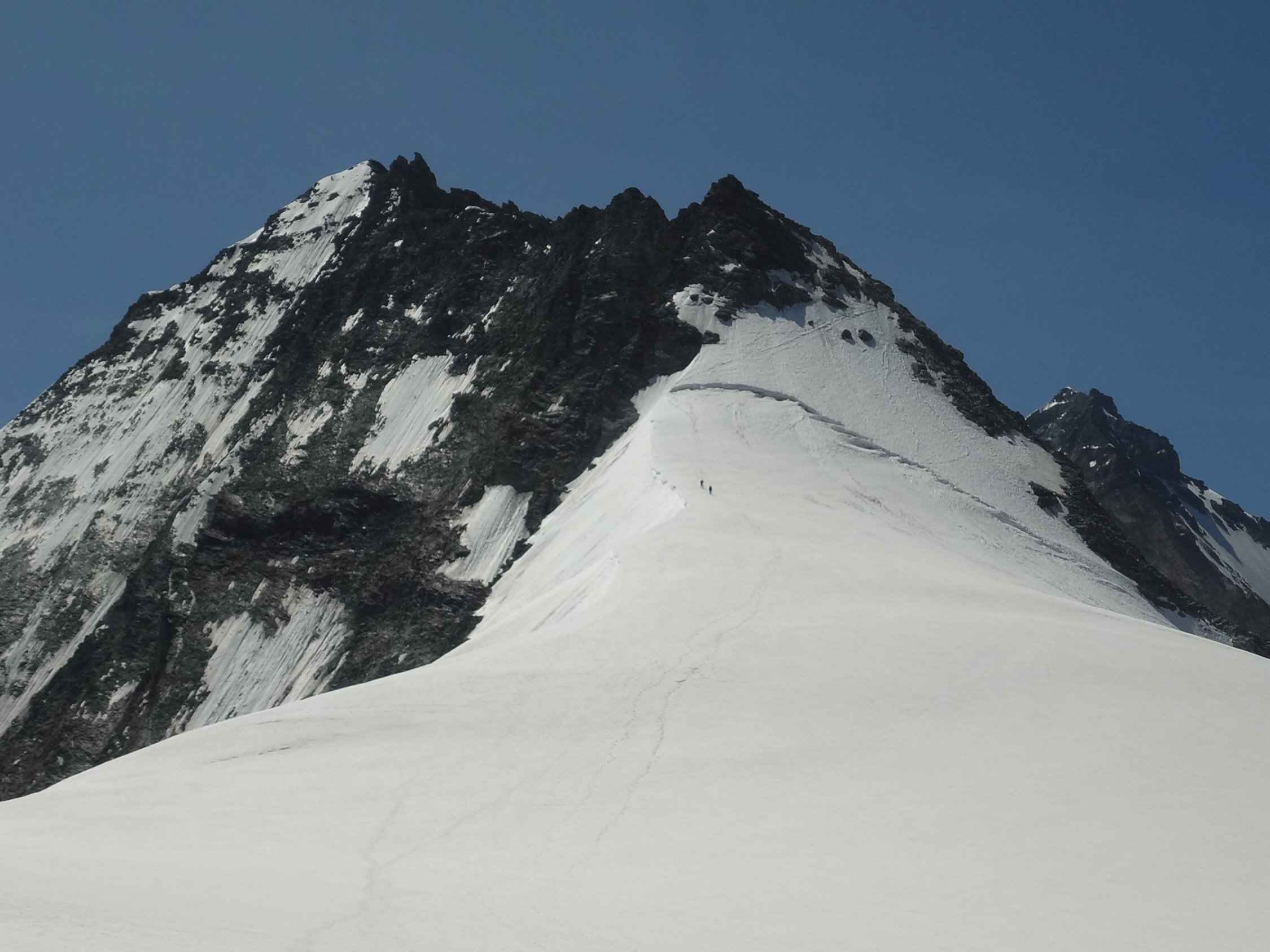 Top-Verhältnisse auf der ganzen Tour. Alle Felspartien sind schneefrei und lassen sich ohne Steigeisen klettern. Beim Bivouac du Col de la Dent Blanche liegt noch Schnee und liefert fliessendes Wasser. Beim Abstieg am N-Grat ist der Firnhang am Gipfelaufbau noch einigermassen trittig. Die Gletscher sind zwar weich, aber noch eingeschneit und gut begehbar.