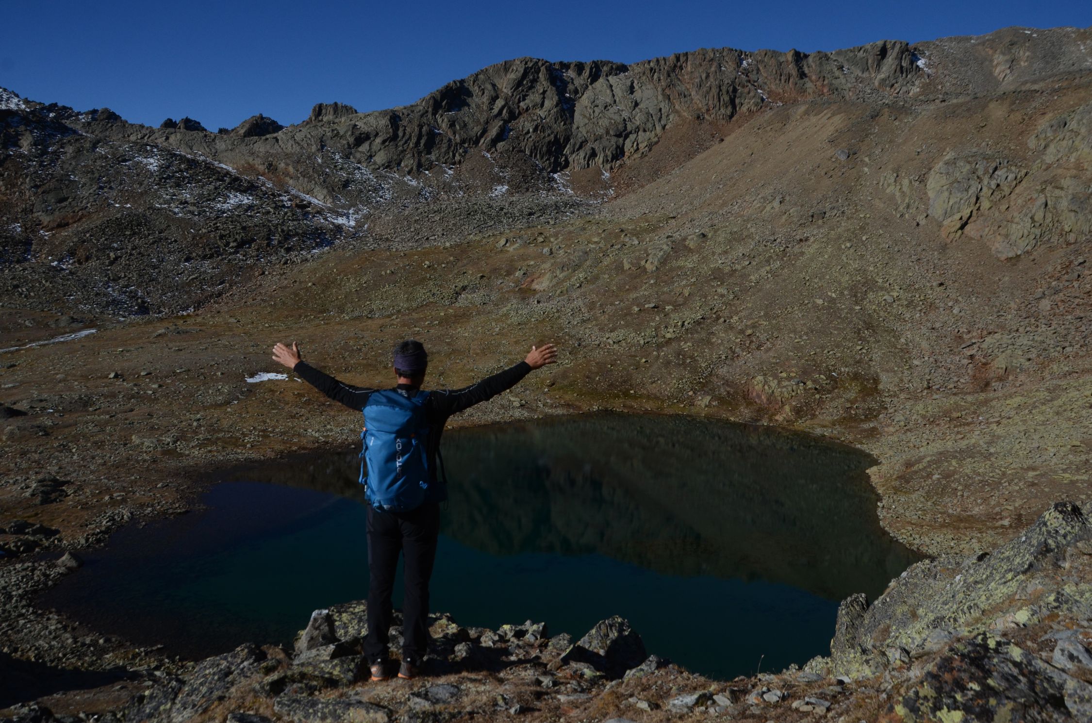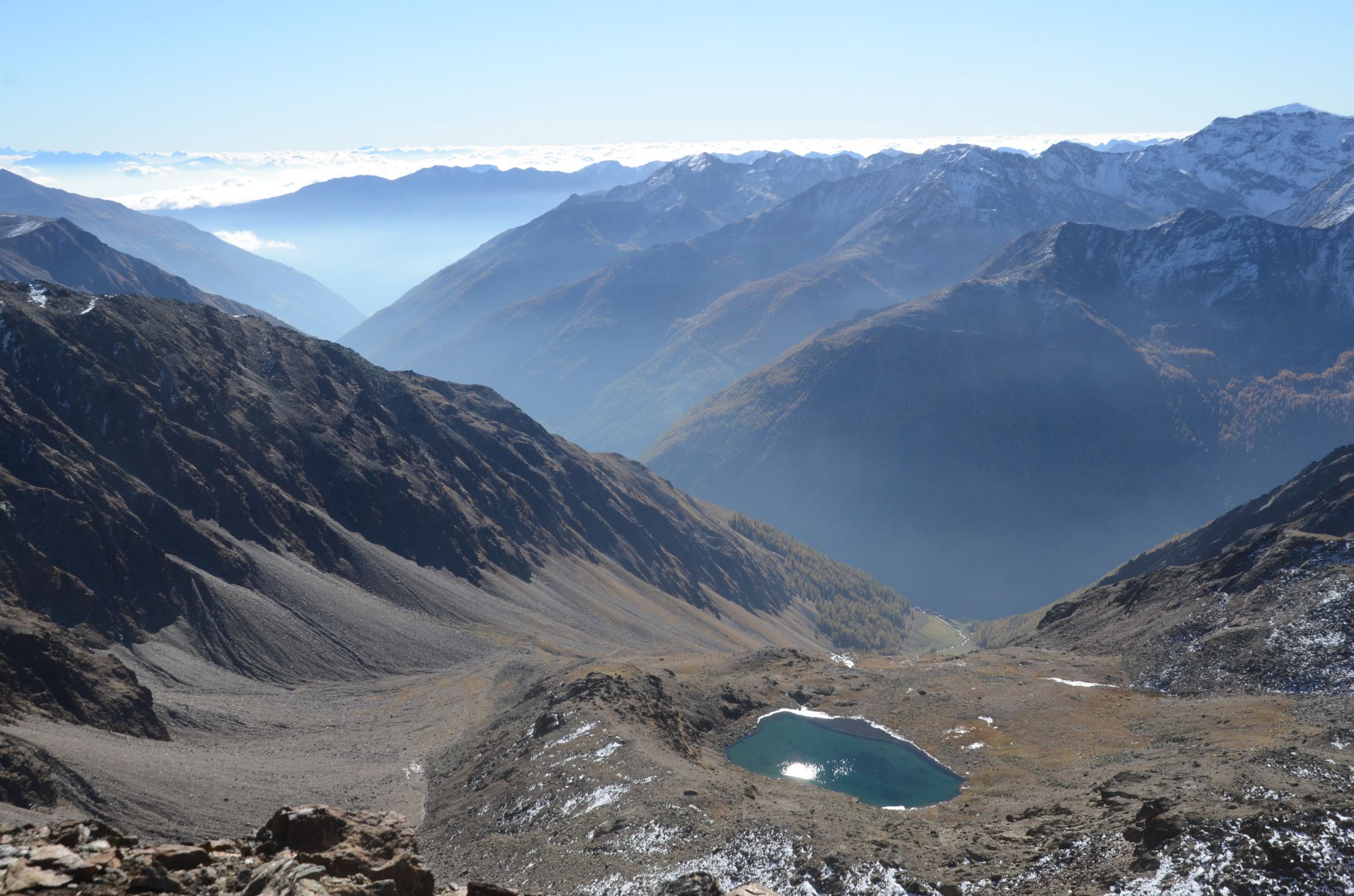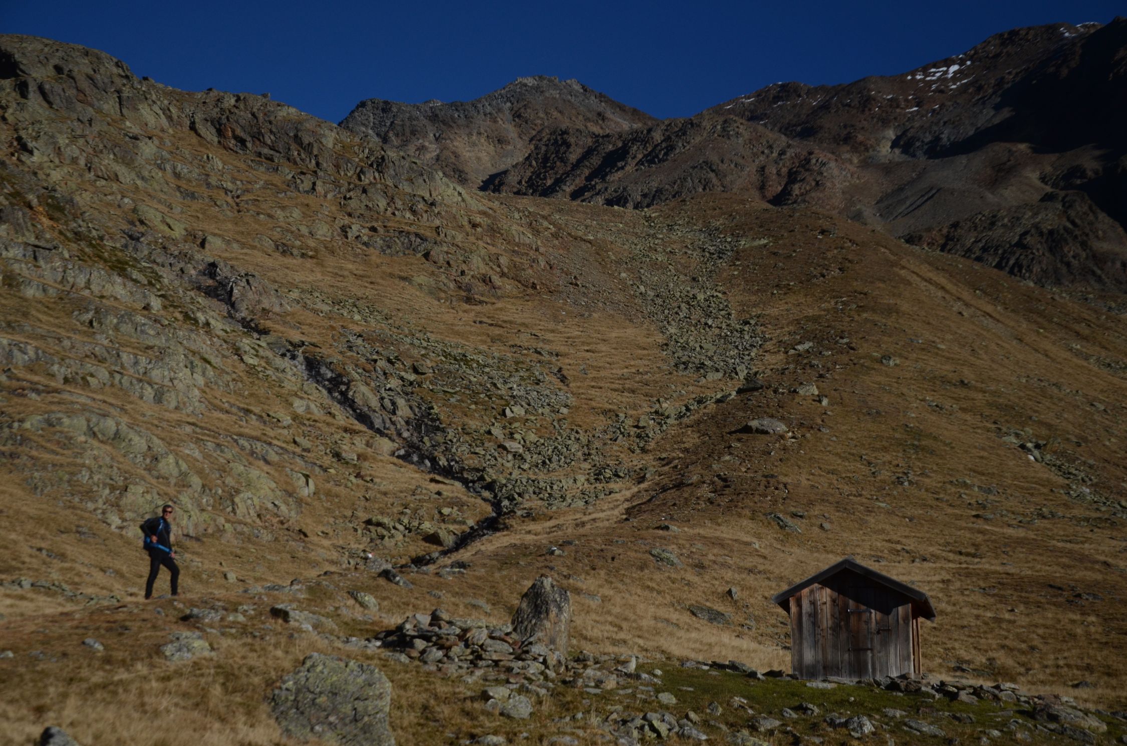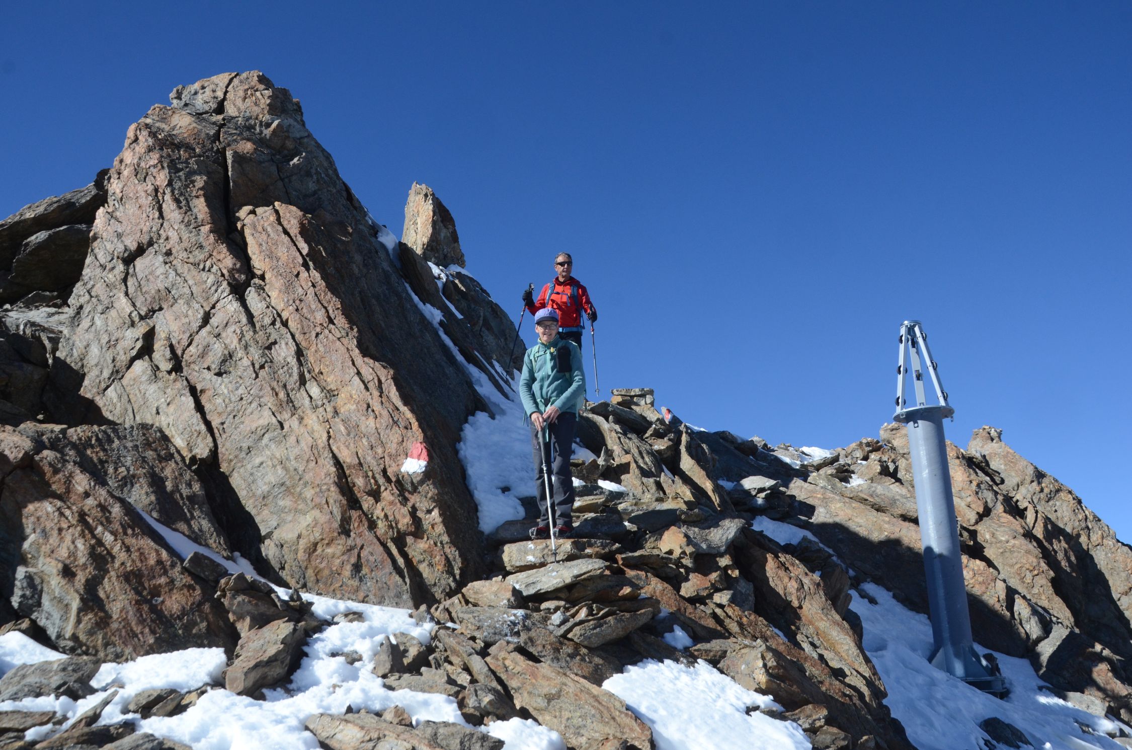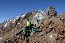 Kurz vor dem Finailjoch gibt es Schnee. Am Grat liegt einiges an Schnee und Eis. Grödlen oder Steigeisen sind vorteilhaft.