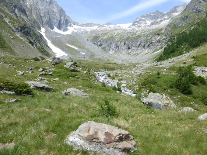 Trotz des Schotters eine wunderschöne alpine Tour mit viel Kontrast und tollem Panorama rundum und dem eindrücklichen Bietschhorn daneben. Nachdem alle anderen zurück sind, hatten wir den Gipfel und das herrliche Jolital ganz für uns alleine. Der Weg entlang der oberen Wasseleitung Laden-Suon als Ausklang bietet dann noch eine spannende Einlage auf alten Brettern an den Holzkäneln..
