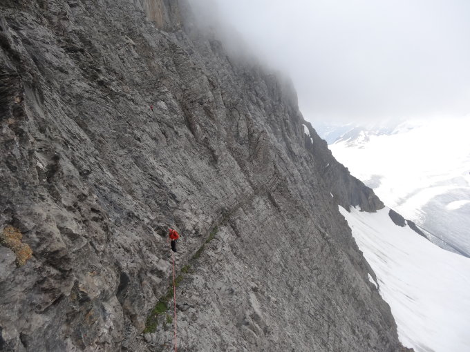 Am Morgen Nebel und leichter Nieselregen, anfangs böiger Wind. Später trocken, aber kein Sonnenschein. Felsen trocken. Gute Verhältnisse! Schnee beim Gipfelschneefeld kompakt.