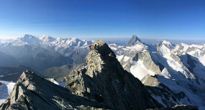 Sehr gute Verhältnisse auf der ganzen Tour. Auf dem Gletscher hat es noch eine bequeme Schneeschicht und die Kletterei im Couloir und zum Gipfel ist schneefrei und trocken.