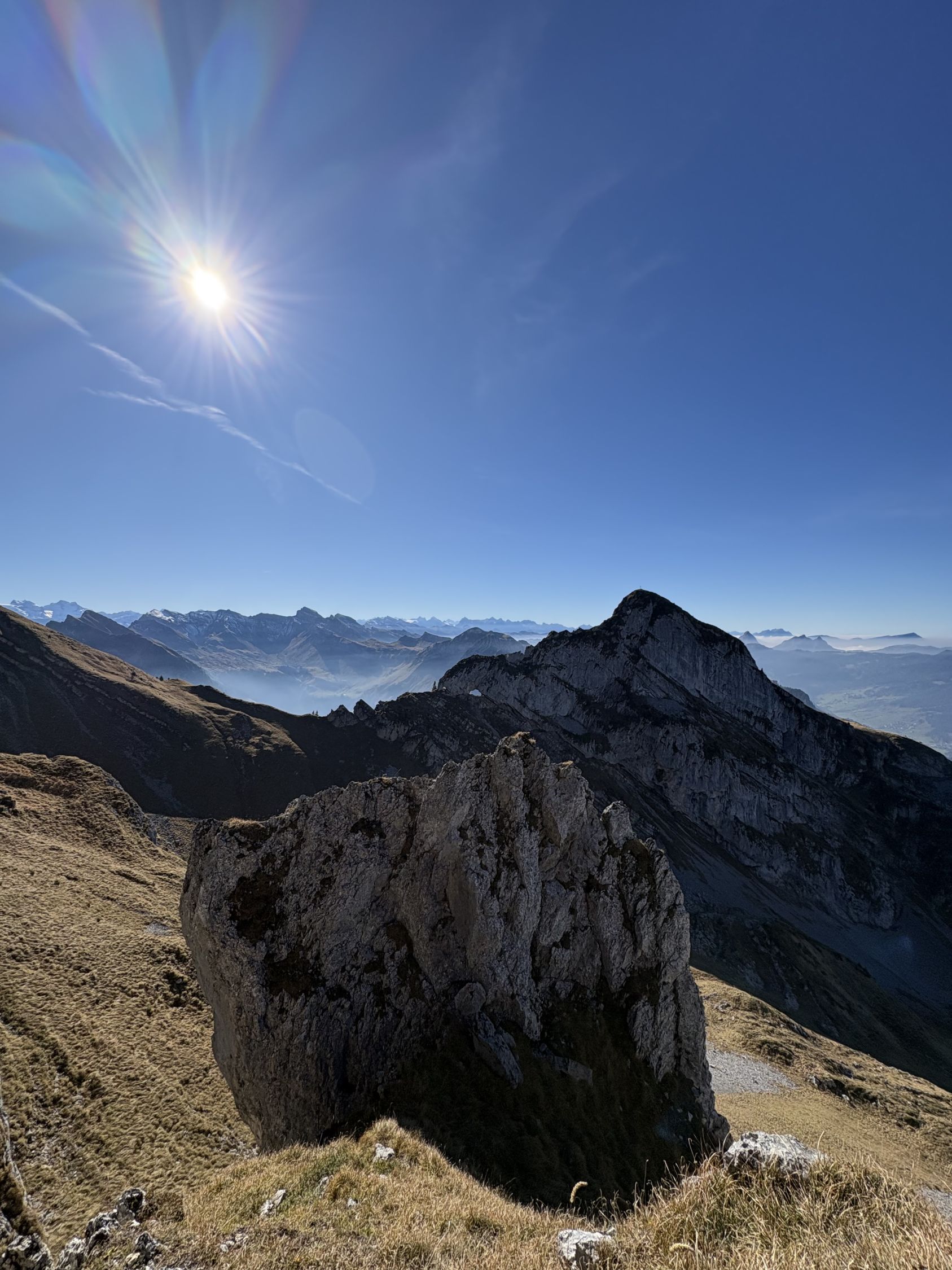 Heute ging es via NordOst Sporn über den Fläschliplangg zu meinem Gipfelbuch nördlich vom Wyss Rössli. Weiter über das Wyss Rössli und Diethelm. Abstieg über die grassige Westflanke und danach den Normalweg via Obergross zurück zum Ochsenboden.