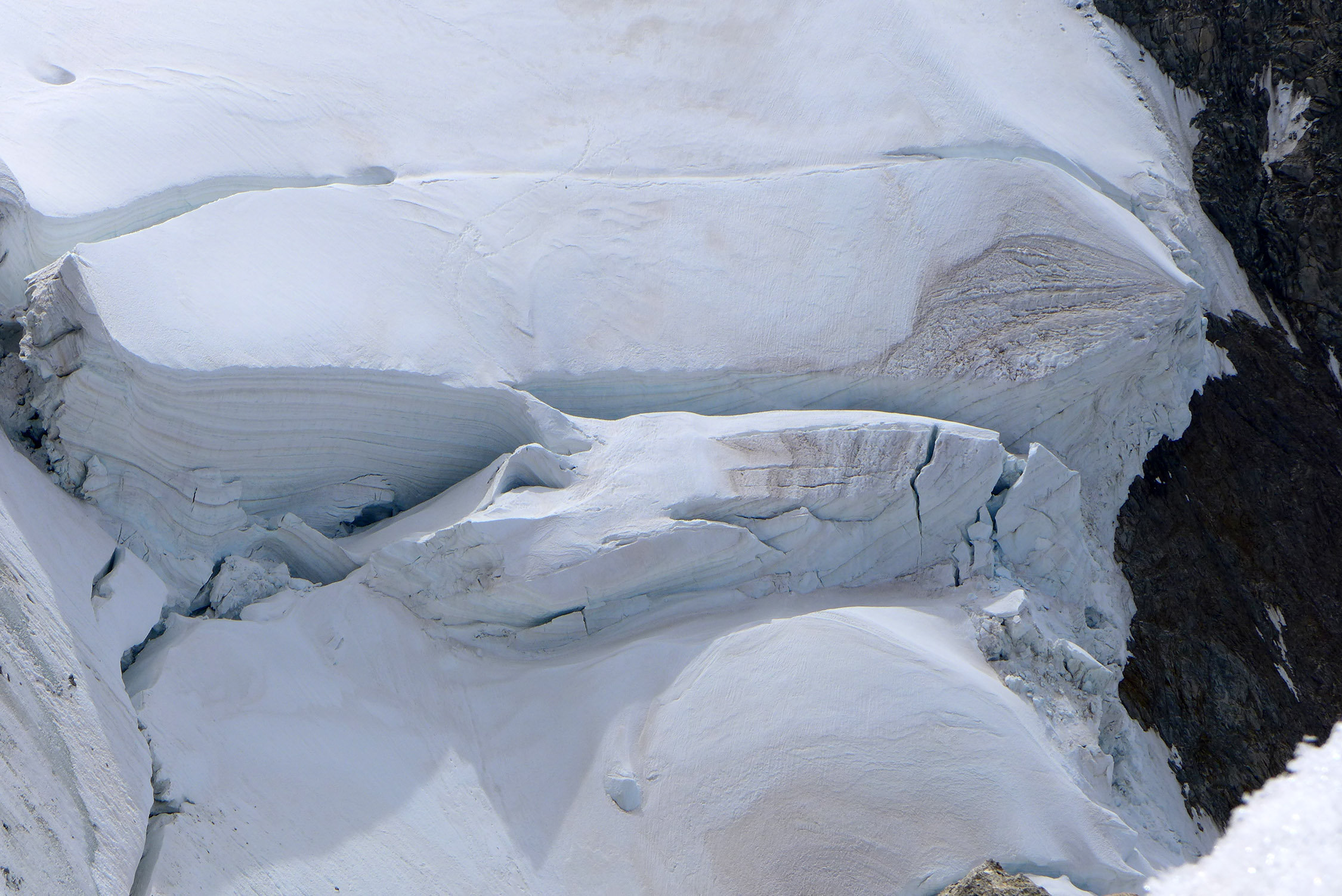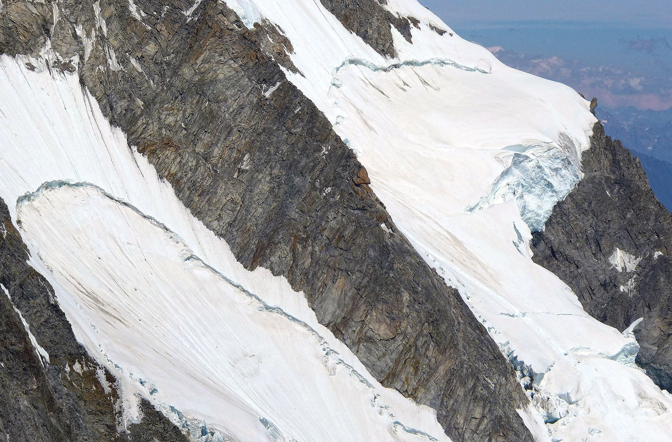 Der Abstieg vom Dôme de Rochefort über den Glacier du Mont Mállet ist bald nicht mehr möglich. (-> Foto).